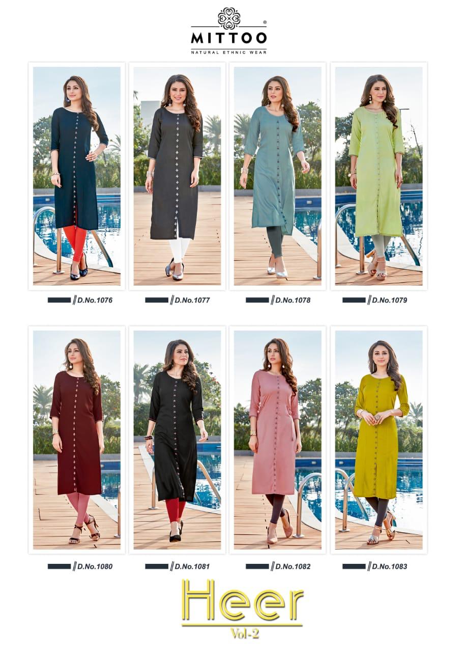 Heer Vol 2 By Mittoo Reyon Kurtis Wholesale Supplier Surat