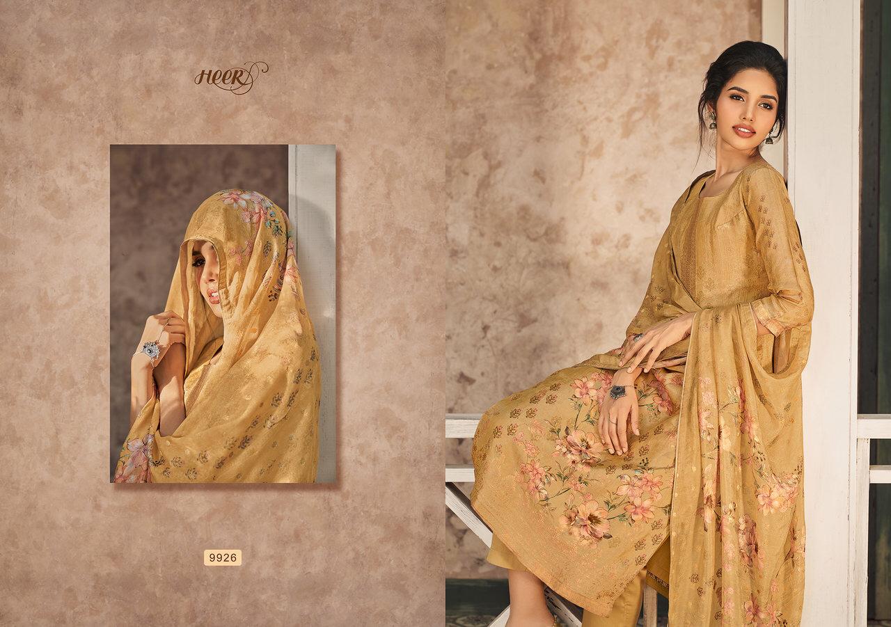 Brand - Kimora . Catlog Name - Heer Vol 63. Series - 9921 to 9928. Set to set. Rate - 2475 per Pcs . GST 5 Percent Extra. Delivery 5-6 days |