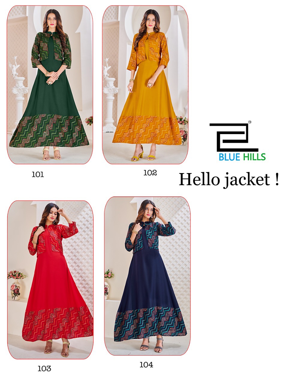 Buy Online Hello Jacket By Blue Hills Long Gown With Koti Collection 4 Pcs of Full Catalogue at Wholesale Price. Looking for Hello Jacket By Blue Hills Long Gown With Koti Collection Full Catalouge at Best Price? Buy Now Hello Jacket By Blue Hills Long Gown With Koti Collection at Wholesale Rate of Rs 2500 with Total 4 Pcs from authroized dealer and supplier of Brand. Cost of Each piece is just only Rs 625 which is very low and affordable price to resale the product in your retail store ,This is Surat based Wholesale Supplier & Dealer of Brand. Click on Brand name to Know more about Brand's products.Call or Whatsapp on 9898838984 for booking or enquiry