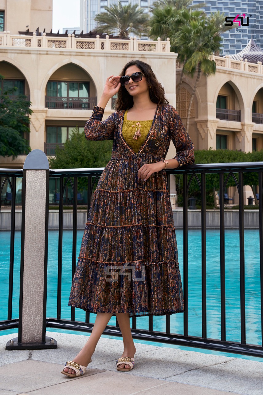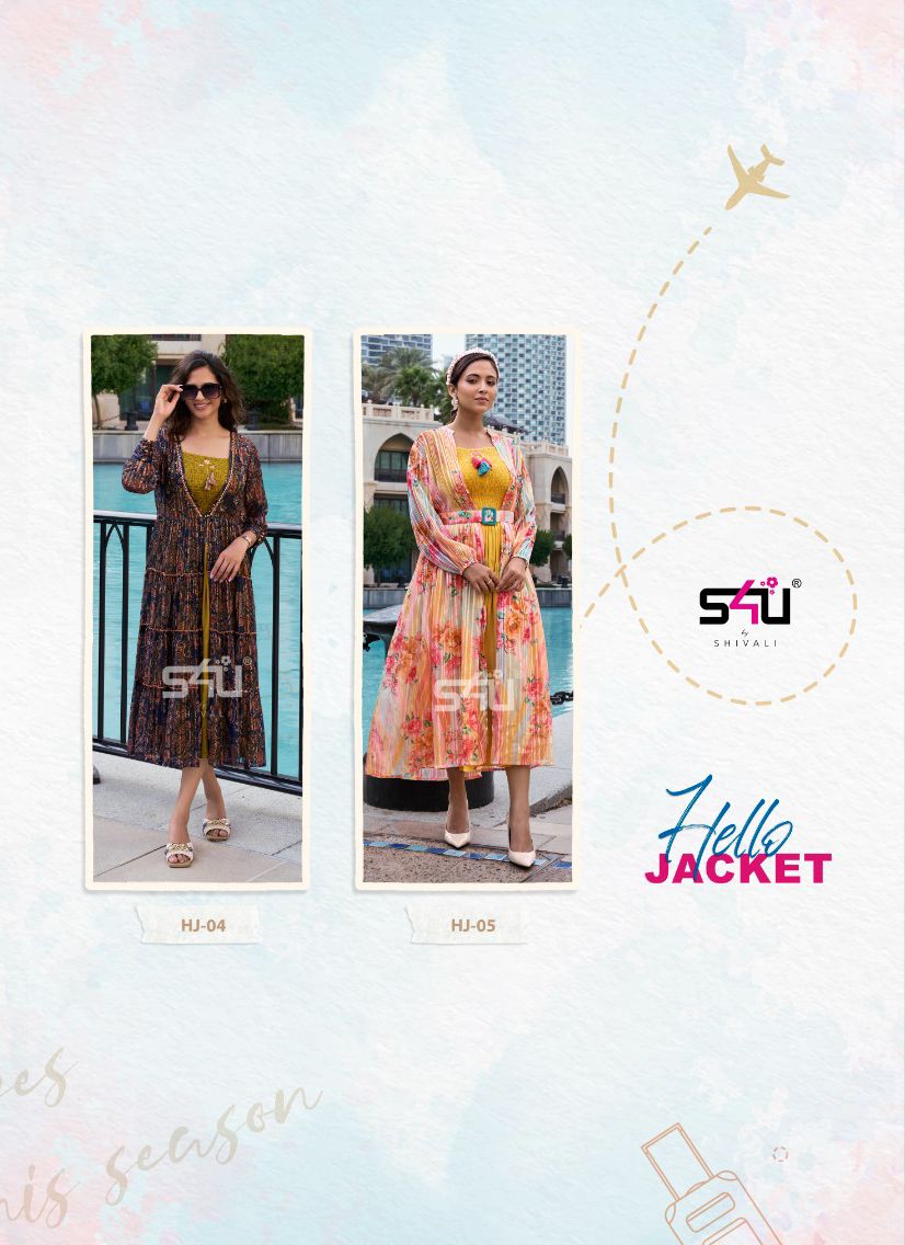 Buy Online Hello Jacket Vol 9 By S4u Stylish Exclusive Gown With Jacket Collection Manufacturer Surat 5 Pcs of Full Catalogue at Wholesale Price. Looking for Hello Jacket Vol 9 By S4u Stylish Exclusive Gown With Jacket Collection Manufacturer Surat Full Catalouge at Best Price? Buy Now Hello Jacket Vol 9 By S4u Stylish Exclusive Gown With Jacket Collection Manufacturer Surat at Wholesale Rate of Rs 7075 with Total 5 Pcs from authroized dealer and supplier of S4U Brand. Cost of Each piece is just only Rs 1415 which is very low and affordable price to resale the product in your retail store ,This is Surat based Wholesale Supplier & Dealer of S4U Brand. Click on Brand name to Know more about S4U Brand's products.Call or Whatsapp on 9898838984 for booking or enquiry