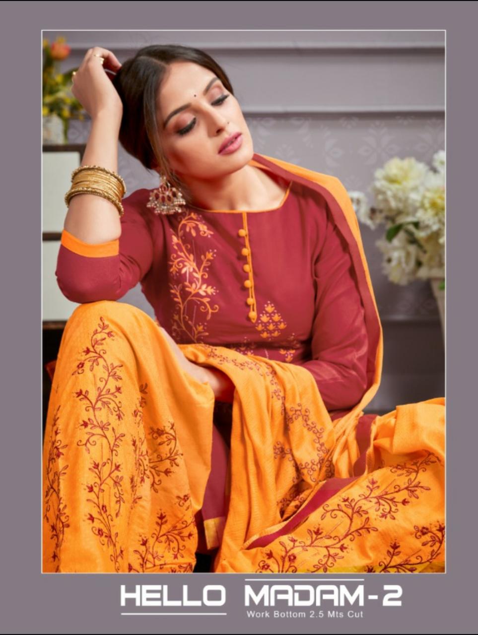 Buy Online Hello Madam Vol 2 By Raghav Cotton Slub Dress Materials Wholesale Supplier Surat 12 Pcs of Full Catalogue at Wholesale Price. Looking for Hello Madam Vol 2 By Raghav Cotton Slub Dress Materials Wholesale Supplier Surat Full Catalouge at Best Price? Buy Now Hello Madam Vol 2 By Raghav Cotton Slub Dress Materials Wholesale Supplier Surat at Wholesale Rate of Rs 8700 with Total 12 Pcs from authroized dealer and supplier of Brand. Cost of Each piece is just only Rs 725 which is very low and affordable price to resale the product in your retail store ,This is Surat based Wholesale Supplier & Dealer of Brand. Click on Brand name to Know more about Brand's products.Call or Whatsapp on 9898838984 for booking or enquiry