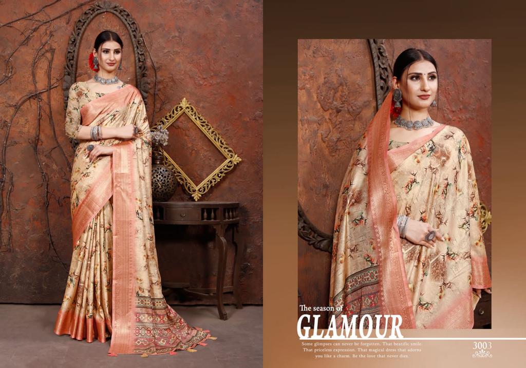 Brand - Mintorsi Digital Print Collection Catalog Name - Heritage Digital Vol.3 Fabric - Tusser Silk Banarsi Weaving Border Total Design - 6 Rate - 1021 per pcs Gst ship extra Single available 100+Singles |