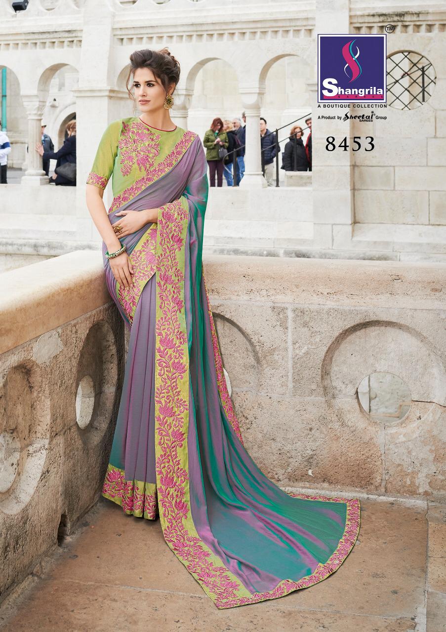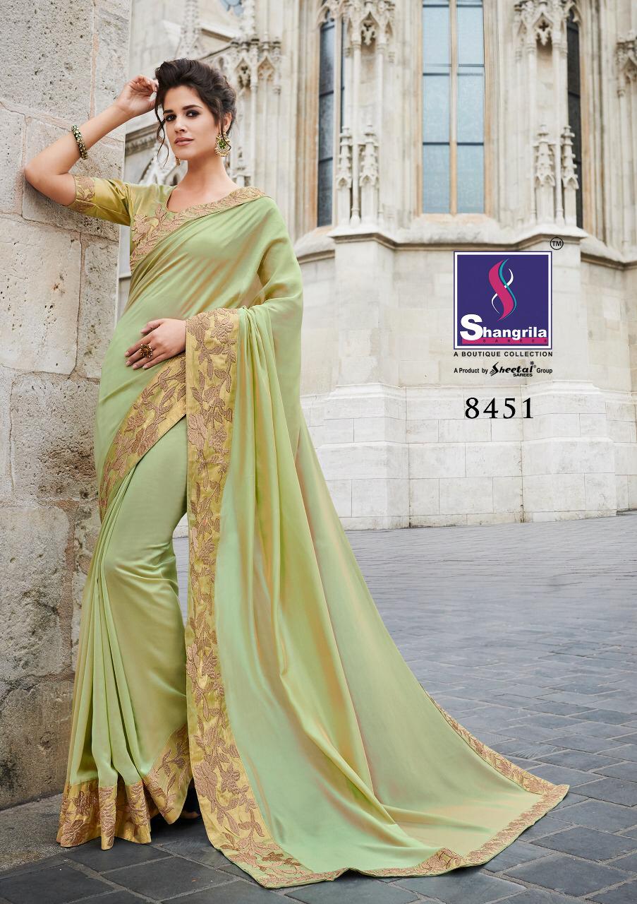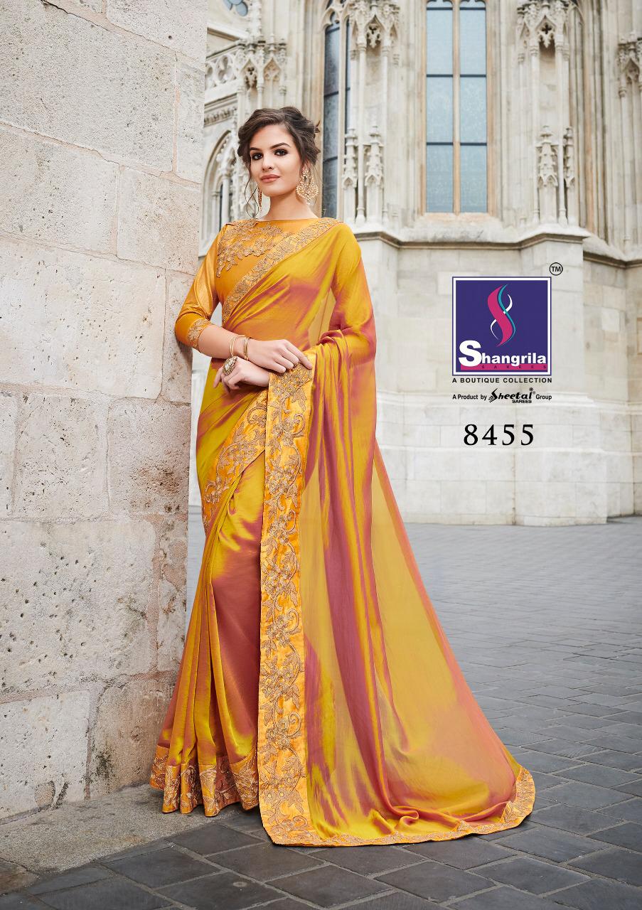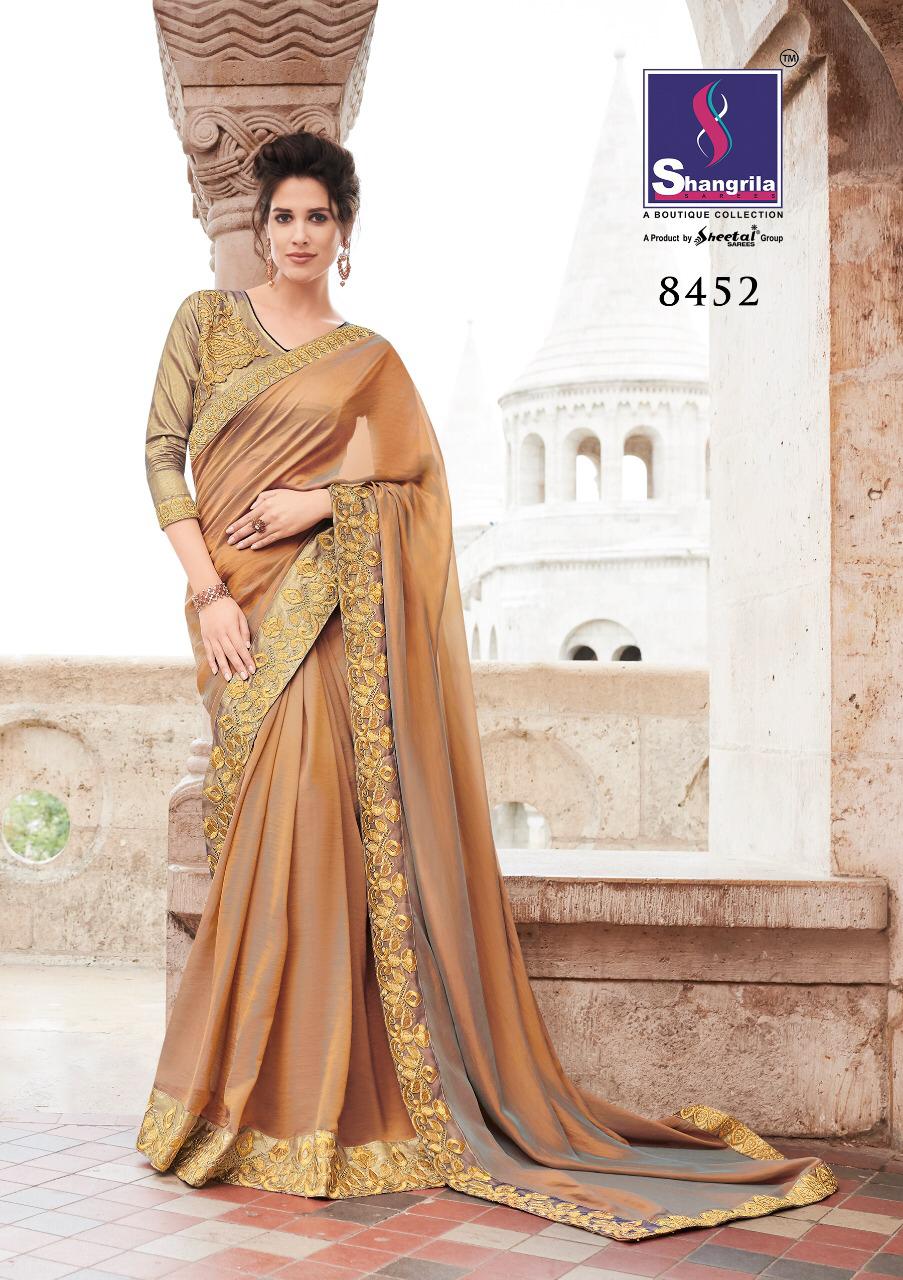 Buy Online Heroine By Shangrila 8451 Series Designer Georgette Party Wear Saree Collection Wholesaler Surat 10 Pcs of Full Catalogue at Wholesale Price. Looking for Heroine By Shangrila 8451 Series Designer Georgette Party Wear Saree Collection Wholesaler Surat Full Catalouge at Best Price? Buy Now Heroine By Shangrila 8451 Series Designer Georgette Party Wear Saree Collection Wholesaler Surat at Wholesale Rate of Rs 13500 with Total 10 Pcs from authroized dealer and supplier of SHANGRILA Brand. Cost of Each piece is just only Rs 1350 which is very low and affordable price to resale the product in your retail store ,This is Surat based Wholesale Supplier & Dealer of SHANGRILA Brand. Click on Brand name to Know more about SHANGRILA Brand's products.Call or Whatsapp on 9898838984 for booking or enquiry