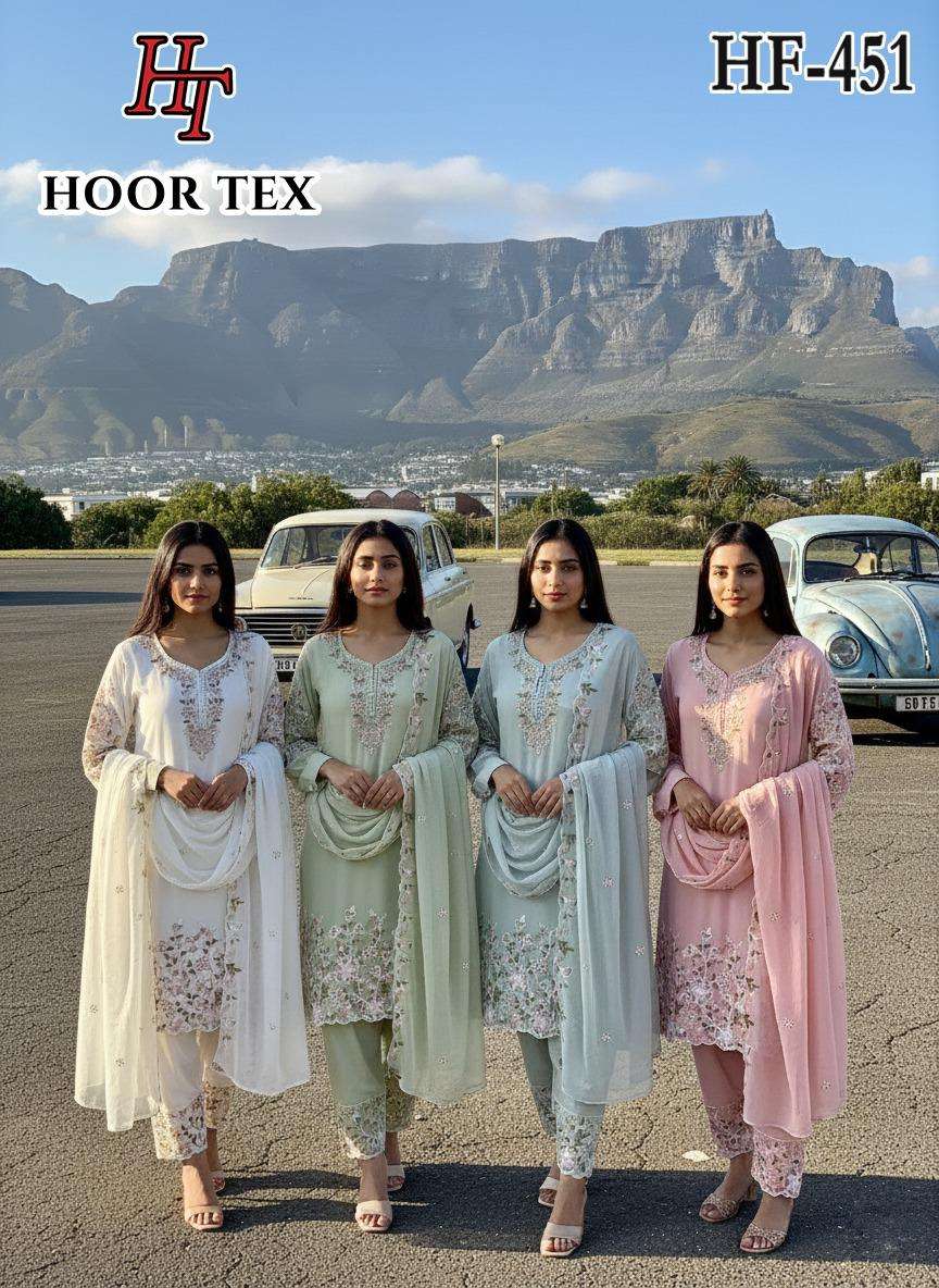 Buy Online HF 451 A To D by Hoor Tex Suit collection manufacturers surat 4 Pcs of Full Catalogue at Wholesale Price. Looking for HF 451 A To D by Hoor Tex Suit collection manufacturers surat Full Catalouge at Best Price? Buy Now HF 451 A To D by Hoor Tex Suit collection manufacturers surat at Wholesale Rate of Rs 6800 with Total 4 Pcs from authroized dealer and supplier of HOOR TEX Brand. Cost of Each piece is just only Rs 1700 which is very low and affordable price to resale the product in your retail store ,This is Surat based Wholesale Supplier & Dealer of HOOR TEX Brand. Click on Brand name to Know more about HOOR TEX Brand's products.Call or Whatsapp on 9898838984 for booking or enquiry