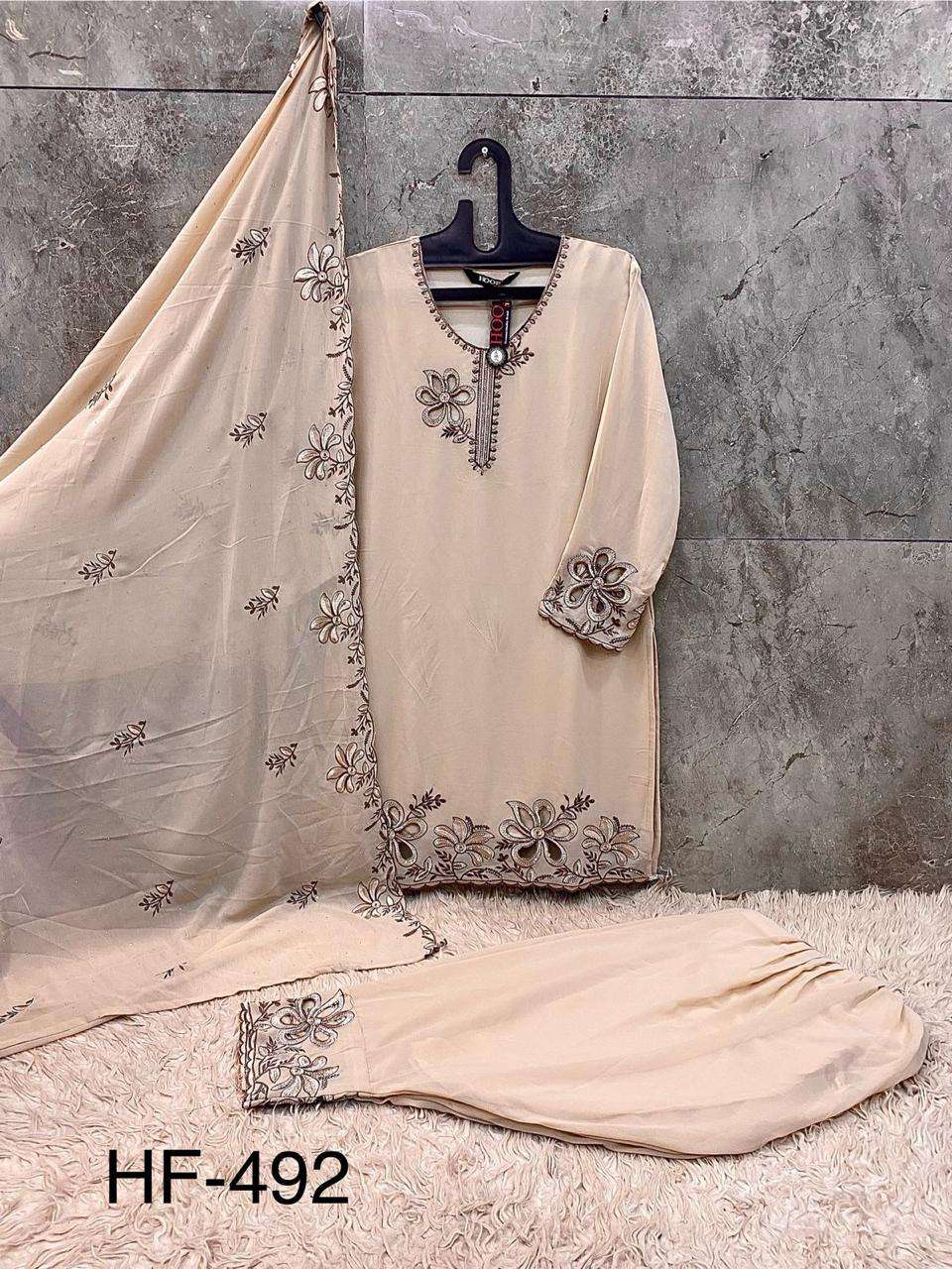 Buy Online HF 492 A To D by Hoor Tex Suit collection manufacturers surat 4 Pcs of Full Catalogue at Wholesale Price. Looking for HF 492 A To D by Hoor Tex Suit collection manufacturers surat Full Catalouge at Best Price? Buy Now HF 492 A To D by Hoor Tex Suit collection manufacturers surat at Wholesale Rate of Rs 5800 with Total 4 Pcs from authroized dealer and supplier of HOOR TEX Brand. Cost of Each piece is just only Rs 1450 which is very low and affordable price to resale the product in your retail store ,This is Surat based Wholesale Supplier & Dealer of HOOR TEX Brand. Click on Brand name to Know more about HOOR TEX Brand's products.Call or Whatsapp on 9898838984 for booking or enquiry