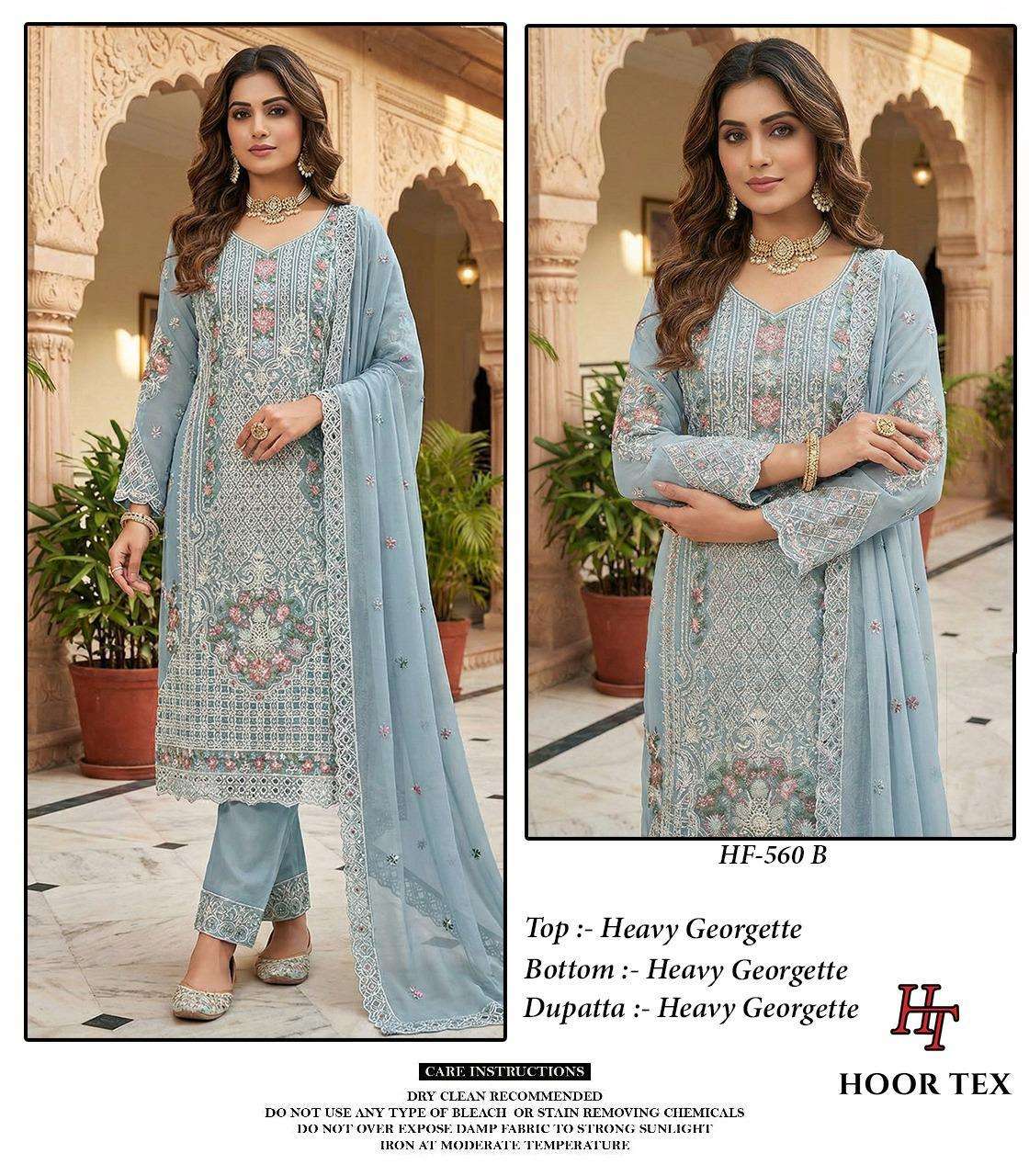 Buy Online HF 560 A To D by Hoor Tex Suit collection manufacturers surat 4 Pcs of Full Catalogue at Wholesale Price. Looking for HF 560 A To D by Hoor Tex Suit collection manufacturers surat Full Catalouge at Best Price? Buy Now HF 560 A To D by Hoor Tex Suit collection manufacturers surat at Wholesale Rate of Rs 7600 with Total 4 Pcs from authroized dealer and supplier of HOOR TEX Brand. Cost of Each piece is just only Rs 1900 which is very low and affordable price to resale the product in your retail store ,This is Surat based Wholesale Supplier & Dealer of HOOR TEX Brand. Click on Brand name to Know more about HOOR TEX Brand's products.Call or Whatsapp on 9898838984 for booking or enquiry