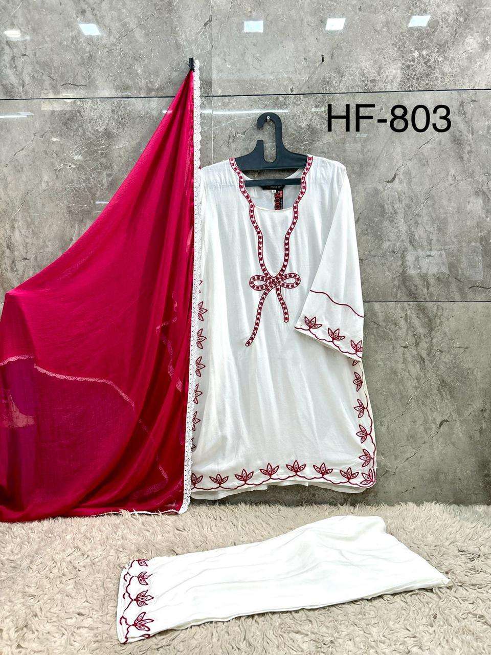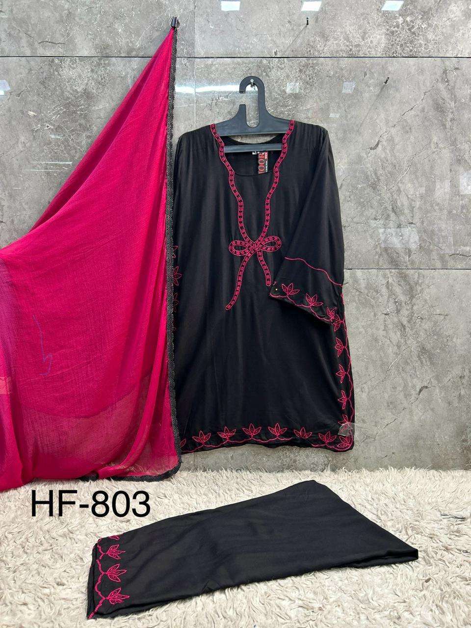 Buy Online HF 803 A To D by Hoor Tex suit collection manufacturers surat 4 Pcs of Full Catalogue at Wholesale Price. Looking for HF 803 A To D by Hoor Tex suit collection manufacturers surat Full Catalouge at Best Price? Buy Now HF 803 A To D by Hoor Tex suit collection manufacturers surat at Wholesale Rate of Rs 3400 with Total 4 Pcs from authroized dealer and supplier of BRAND'S Brand. Cost of Each piece is just only Rs 850 which is very low and affordable price to resale the product in your retail store ,This is Surat based Wholesale Supplier & Dealer of BRAND'S Brand. Click on Brand name to Know more about BRAND'S Brand's products.Call or Whatsapp on 9898838984 for booking or enquiry