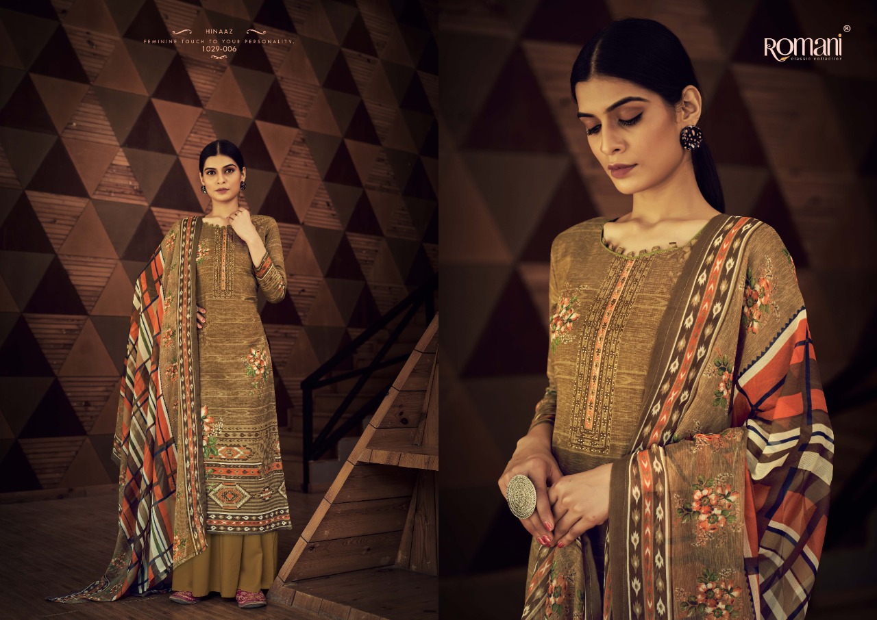 Buy Online Hinaaz By Romani Wholesaler Supplier From Surat 10 Pcs of Full Catalogue at Wholesale Price. Looking for Hinaaz By Romani Wholesaler Supplier From Surat Full Catalouge at Best Price? Buy Now Hinaaz By Romani Wholesaler Supplier From Surat at Wholesale Rate of Rs 4350 with Total 10 Pcs from authroized dealer and supplier of Brand. Cost of Each piece is just only Rs 435 which is very low and affordable price to resale the product in your retail store ,This is Surat based Wholesale Supplier & Dealer of Brand. Click on Brand name to Know more about Brand's products.Call or Whatsapp on 9898838984 for booking or enquiry