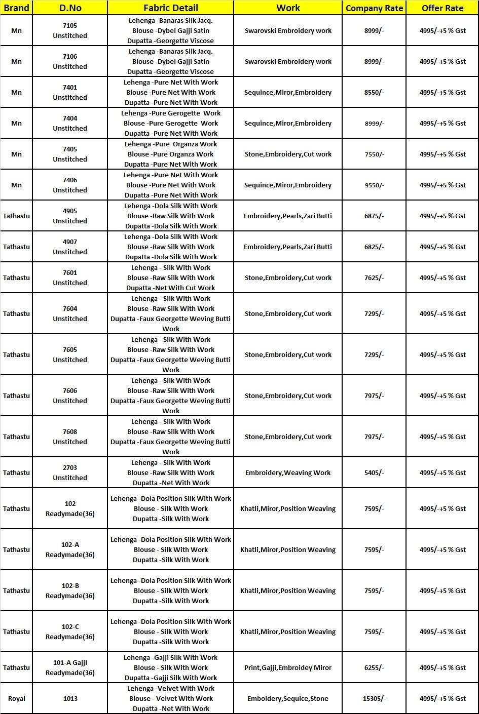 | Note | Stitching available on customer Requirment For Sarees , Salwar Kameez, Lehengha.(i.e M,L,XL,XXL). |