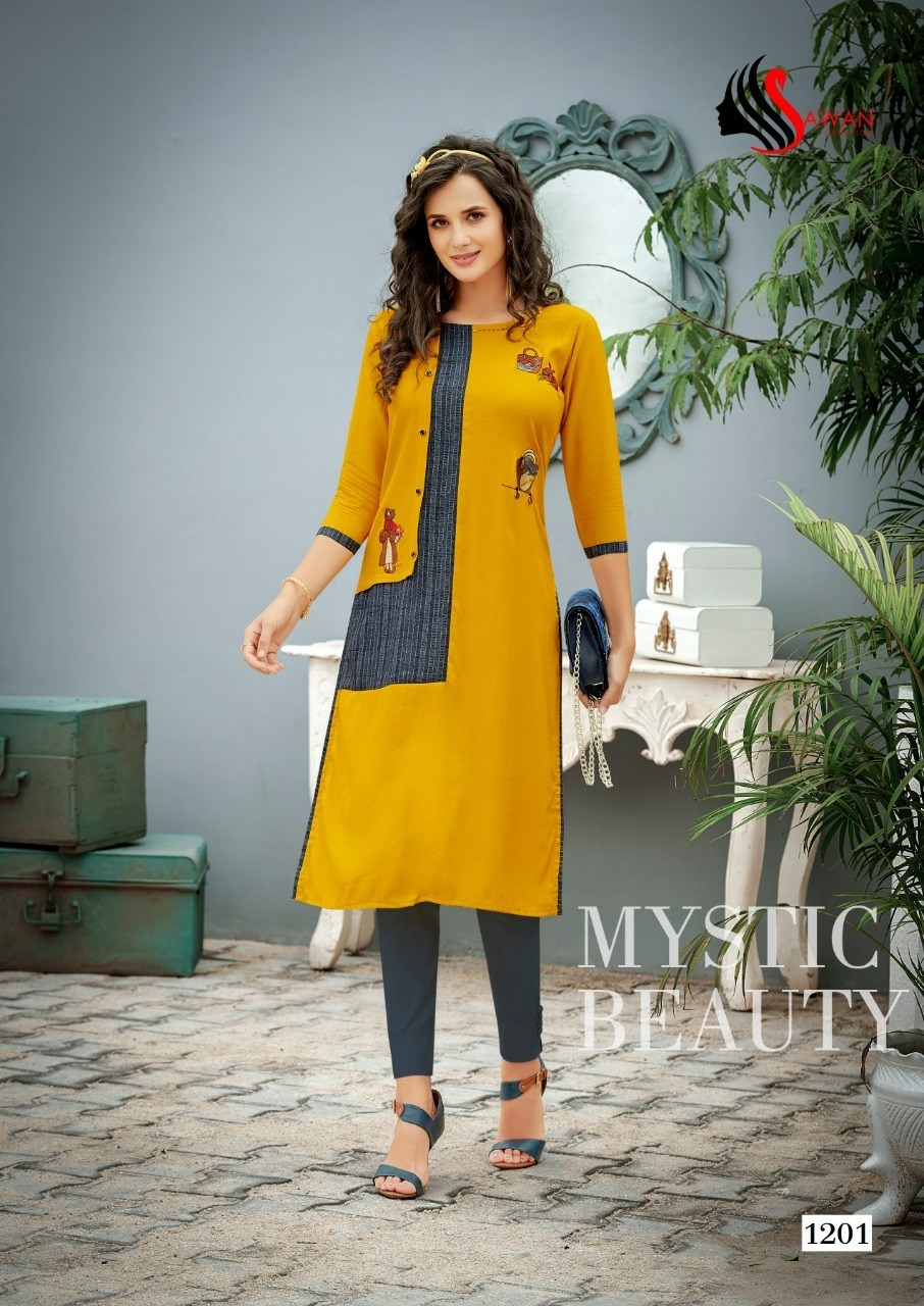 Honey Vol 12 By Sawan Creation Reyon Kurtis Collection Supplier Gujarat