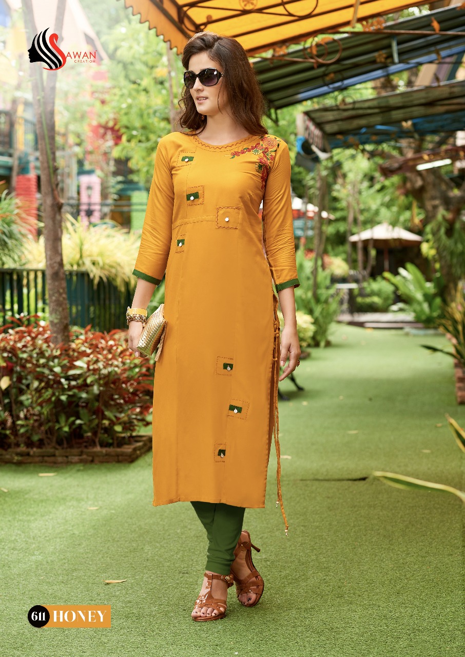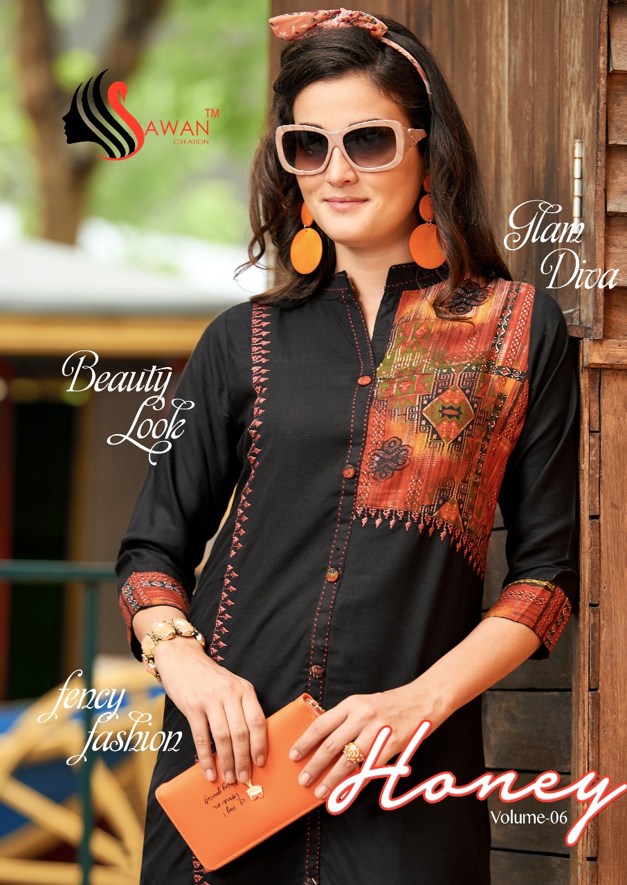 Buy Online Honey Vol 6 By Sawan Creation Heavy Reyon Printed Long Straight Kurtis Wholesale Supplier And Dealer Surat 14 Pcs of Full Catalogue at Wholesale Price. Looking for Honey Vol 6 By Sawan Creation Heavy Reyon Printed Long Straight Kurtis Wholesale Supplier And Dealer Surat Full Catalouge at Best Price? Buy Now Honey Vol 6 By Sawan Creation Heavy Reyon Printed Long Straight Kurtis Wholesale Supplier And Dealer Surat at Wholesale Rate of Rs 5530 with Total 14 Pcs from authroized dealer and supplier of SAWAN CREATION Brand. Cost of Each piece is just only Rs 395 which is very low and affordable price to resale the product in your retail store ,This is Surat based Wholesale Supplier & Dealer of SAWAN CREATION Brand. Click on Brand name to Know more about SAWAN CREATION Brand's products.Call or Whatsapp on 9898838984 for booking or enquiry