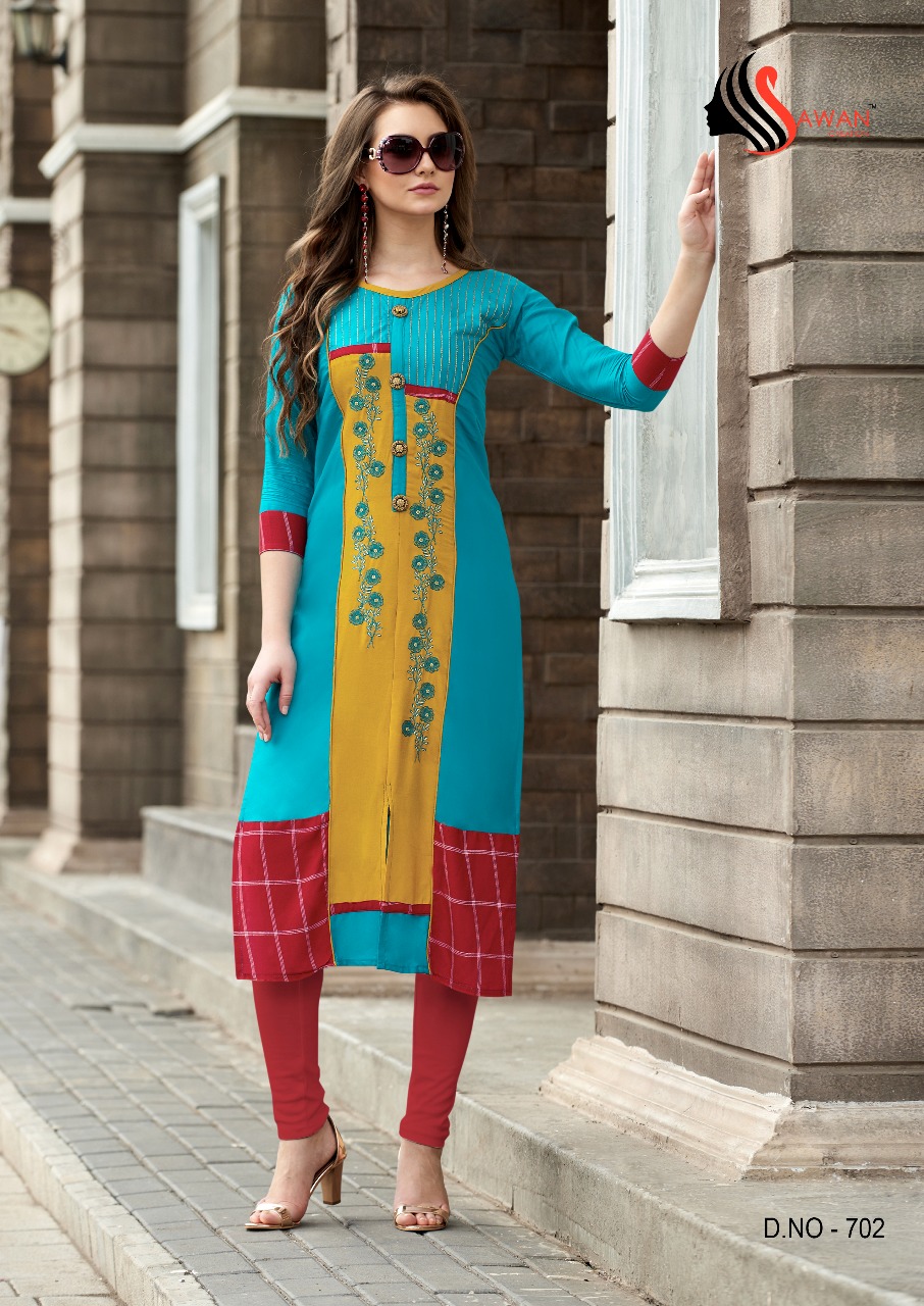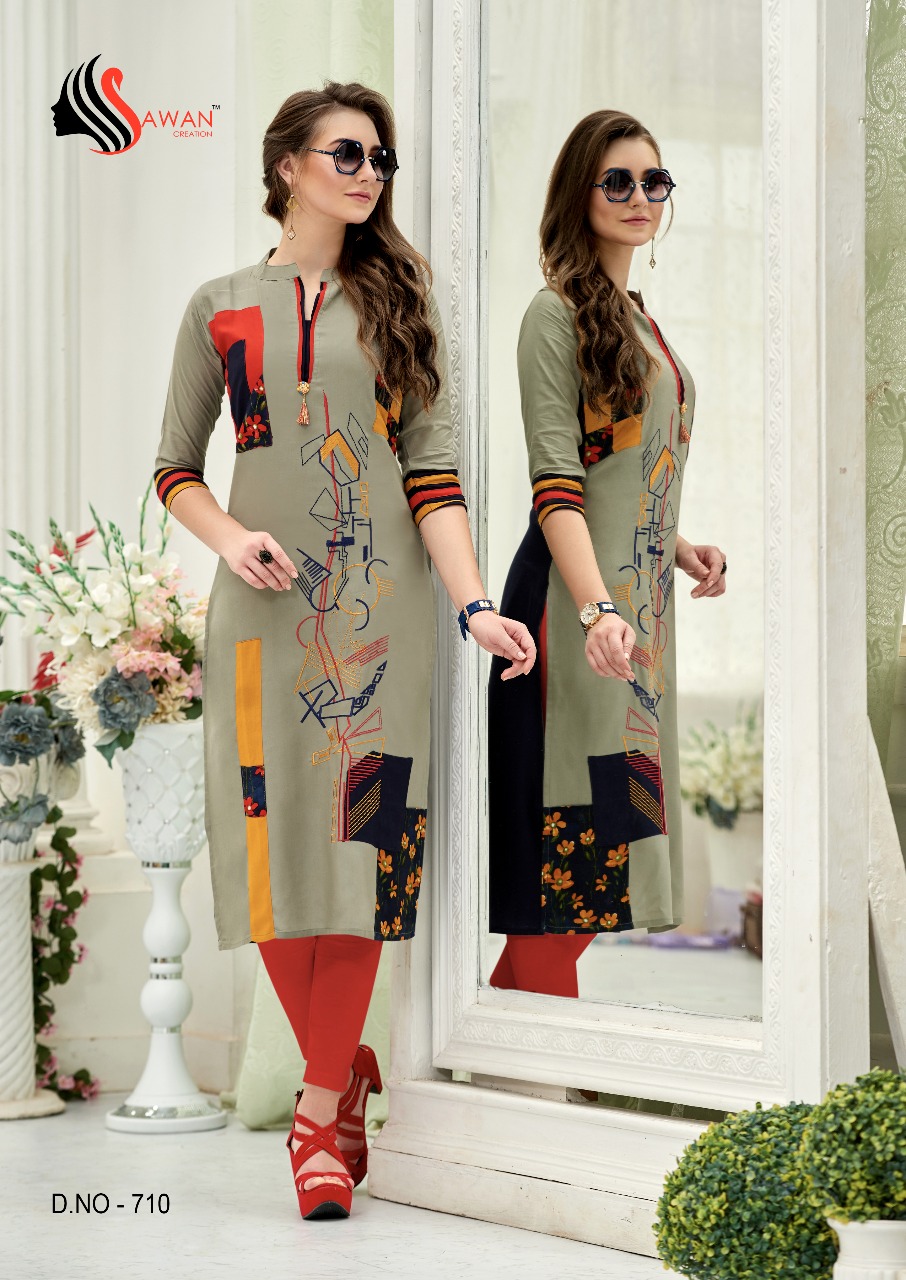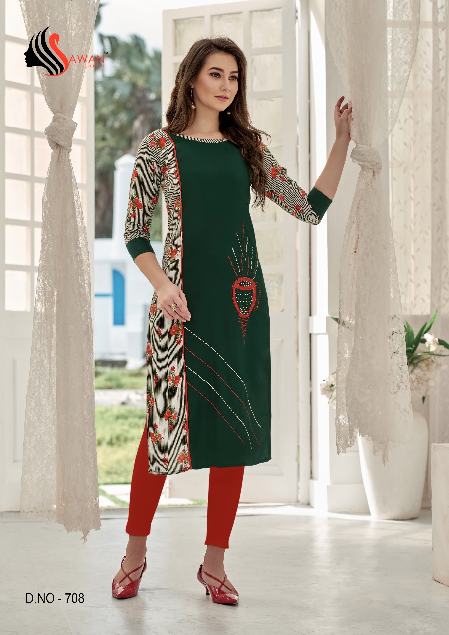 Honey Vol 7 By Sawan Creation Reyon Printed Embroidered Designer Kurtis Catalog Wholesale Supplier And Dealer India