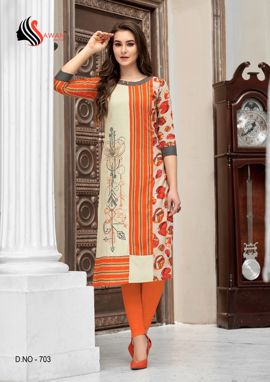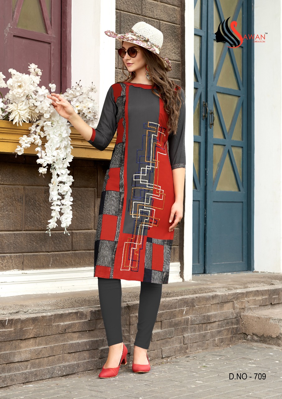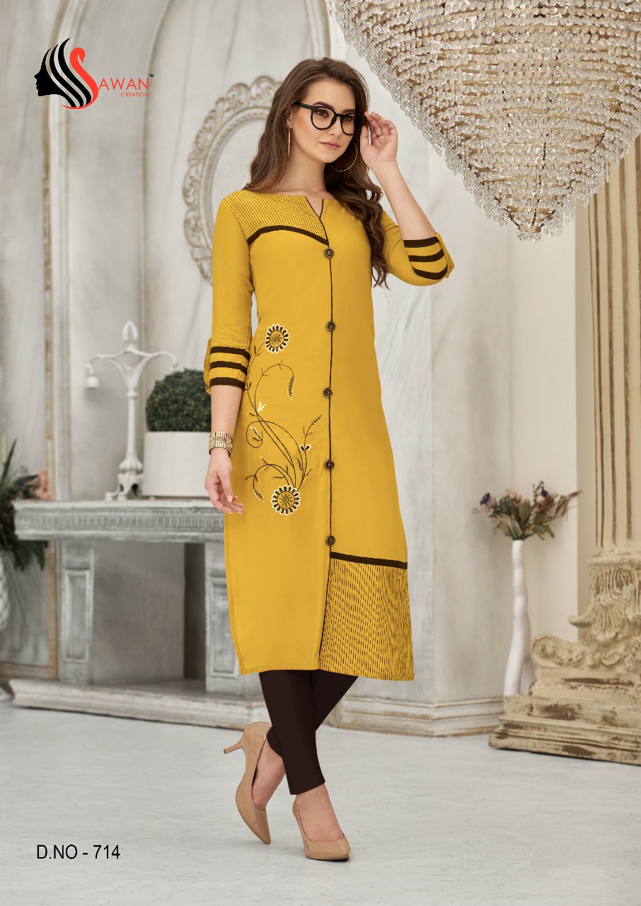 Honey Vol 7 By Sawan Creation Reyon Printed Embroidered Designer Kurtis Catalog Wholesale Supplier And Dealer India