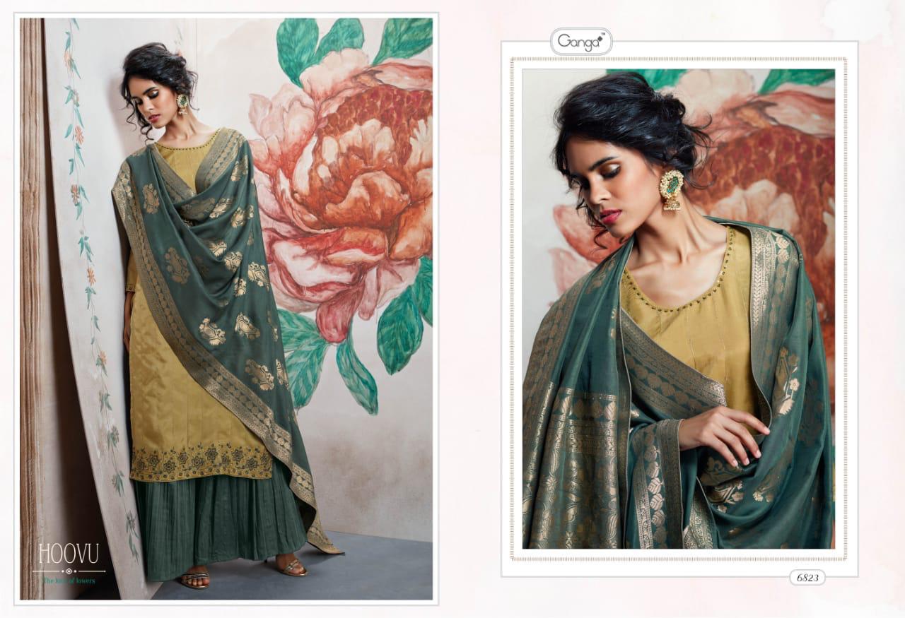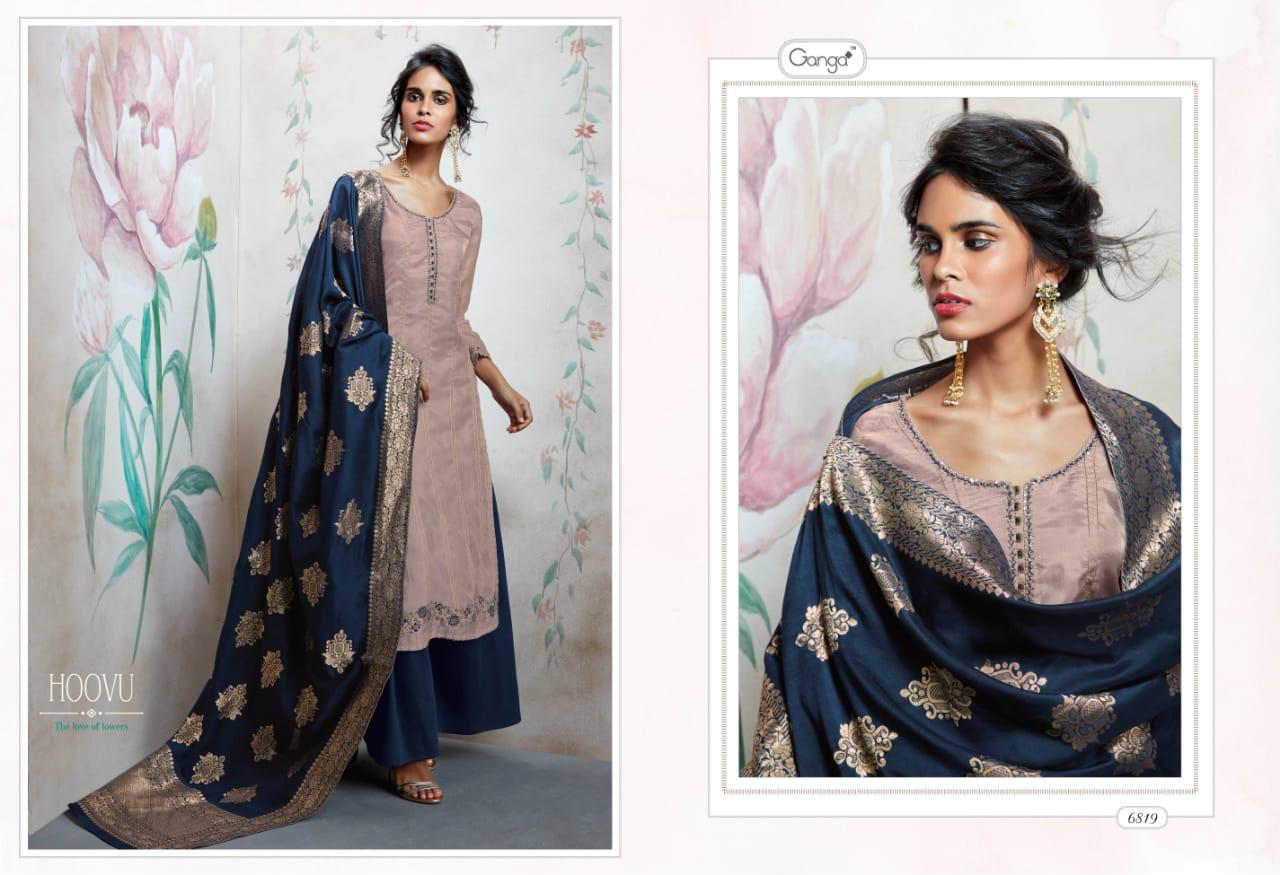 Hoovu By Ganga Series 6819 To 6824 Silk Embroidered Designer Party Wear Suits Wholesale Supplier Surat