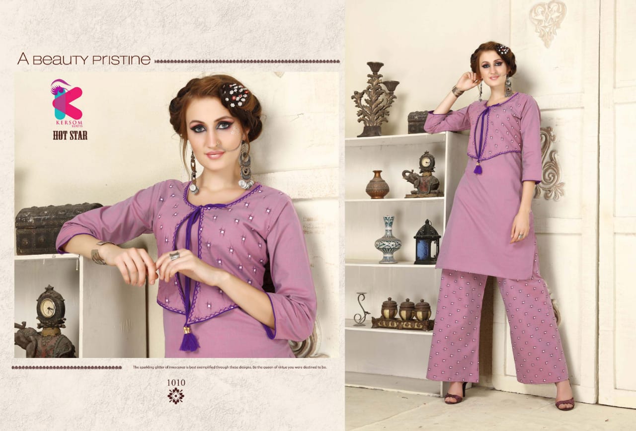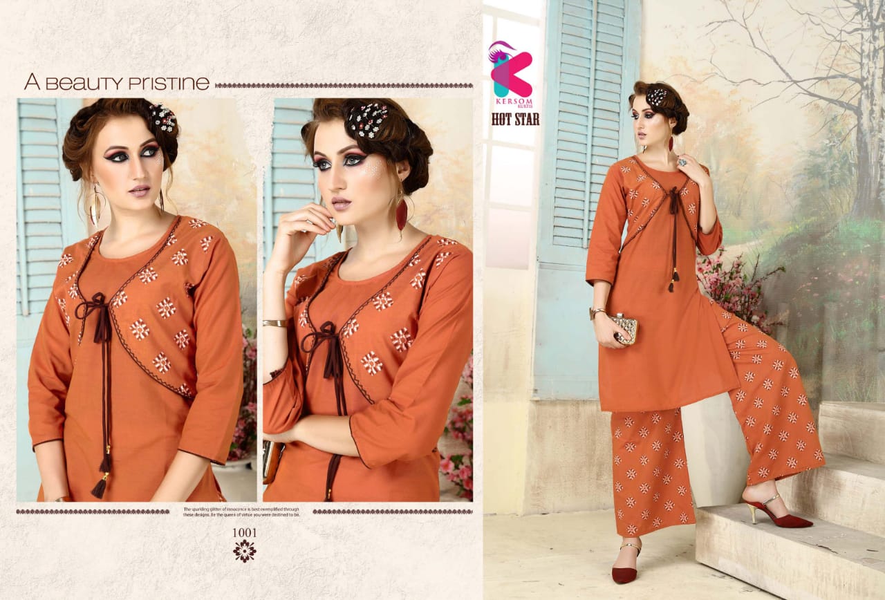 Hot Star By Kersom Cotton Kurtis With Plazzo Collection Wholesale Dealer And Exporter Nitya Nx Surat