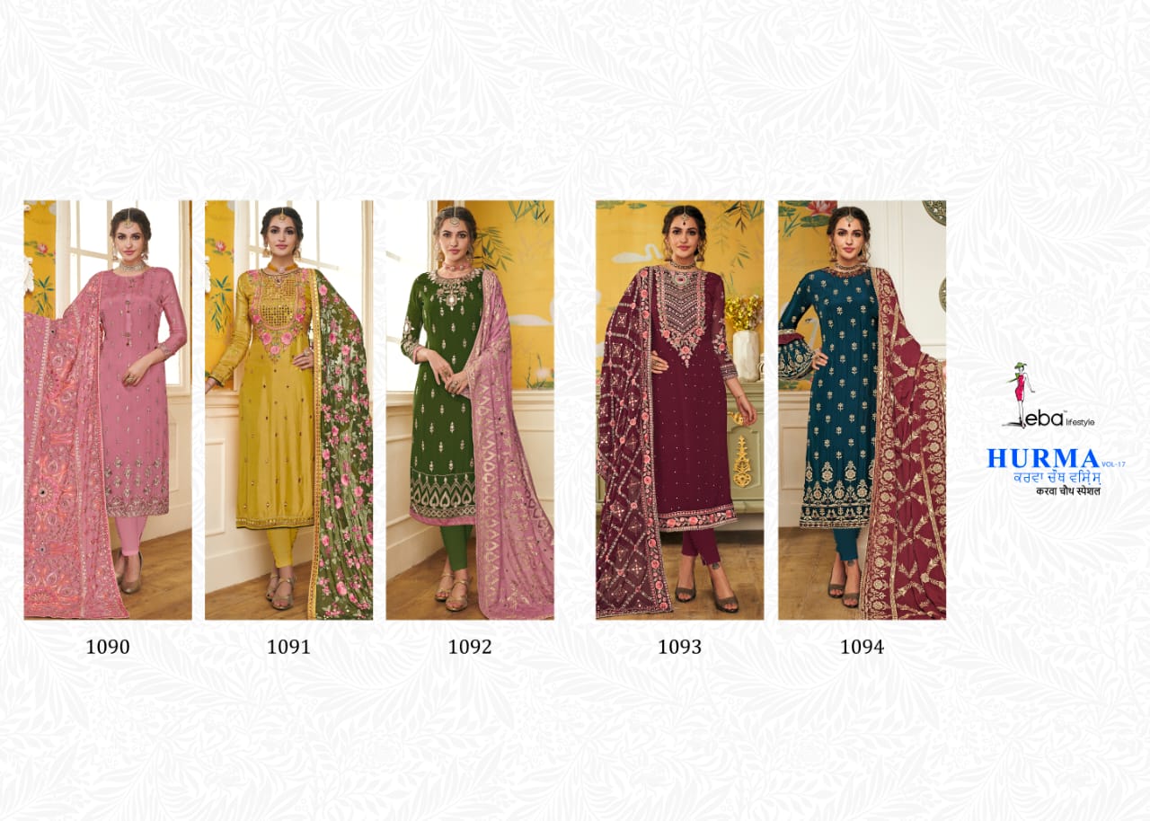 Hurma Vol 17 By Eba Lifestyle Series 1090 To 1094 Designer Party Wear Suits Wholesale Supplier Gujarat