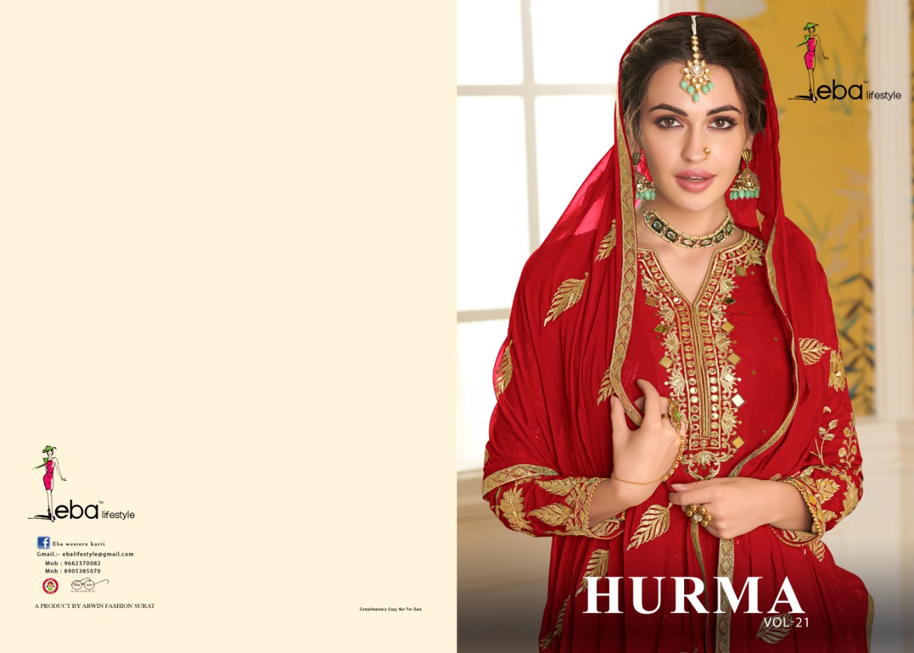 Hurma Vol 21 By Eba Lifestyle Series 1111 To 1113 Designer Party Wear Suits Wholesale Supplier Gujarat