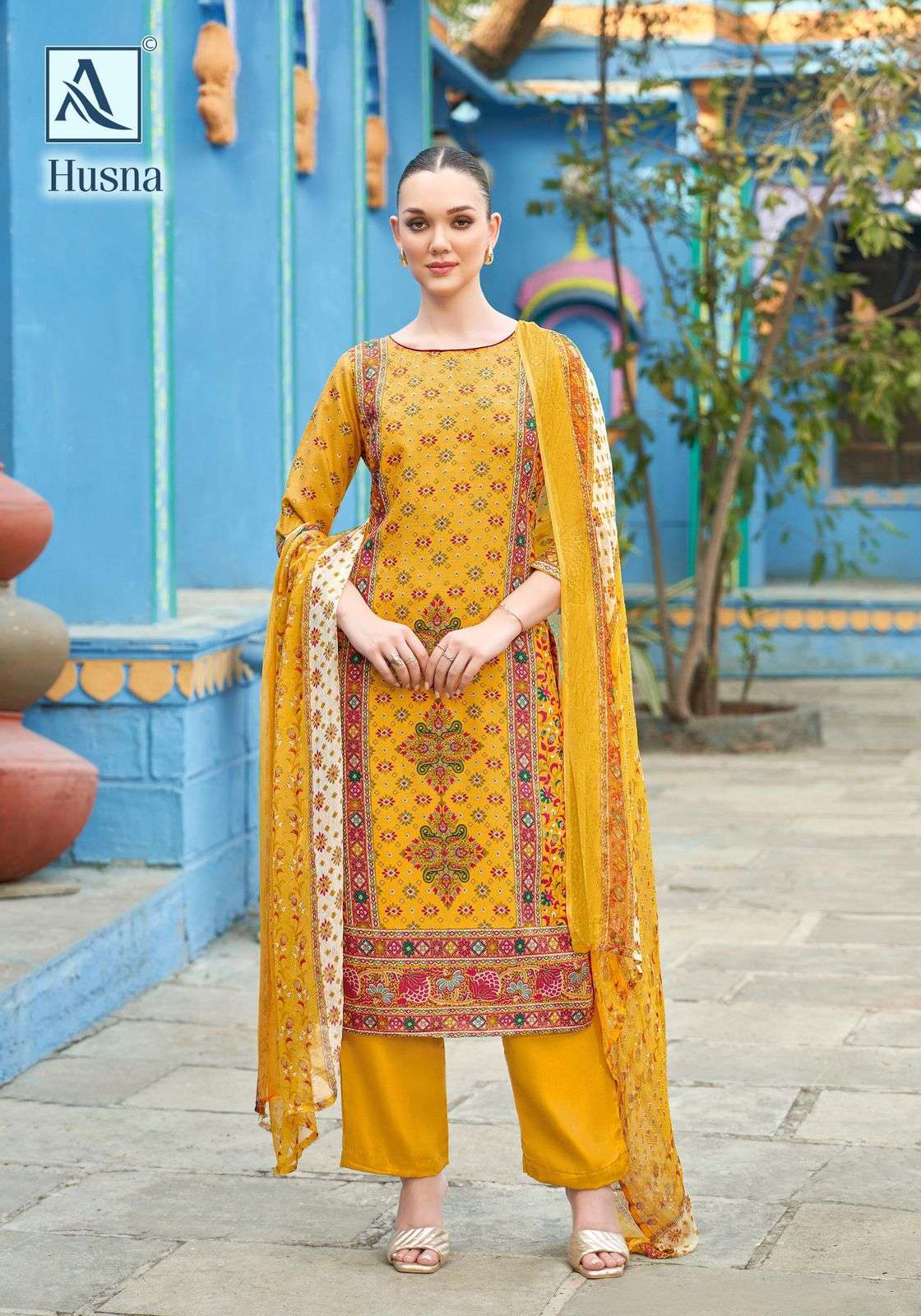 Buy Online HUSNA by Alok Suit Pure Viscose suit collection manufacturer surat 6 Pcs of Full Catalogue at Wholesale Price. Looking for HUSNA by Alok Suit Pure Viscose suit collection manufacturer surat Full Catalouge at Best Price? Buy Now HUSNA by Alok Suit Pure Viscose suit collection manufacturer surat at Wholesale Rate of Rs 4500 with Total 6 Pcs from authroized dealer and supplier of ALOK SUIT Brand. Cost of Each piece is just only Rs 750 which is very low and affordable price to resale the product in your retail store ,This is Surat based Wholesale Supplier & Dealer of ALOK SUIT Brand. Click on Brand name to Know more about ALOK SUIT Brand's products.Call or Whatsapp on 9898838984 for booking or enquiry