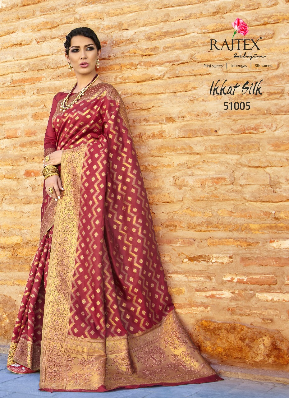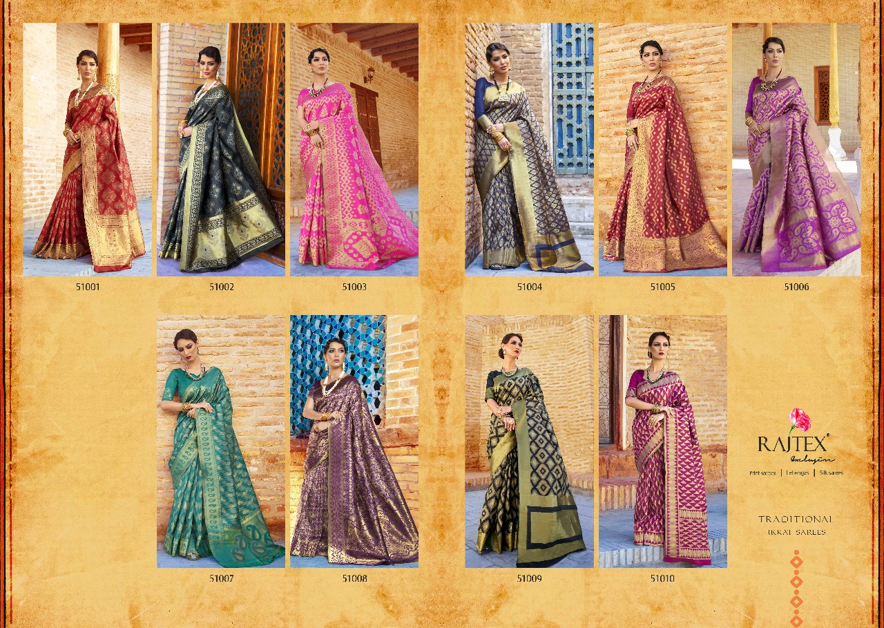 Ikkat Silk By Rajtex Fabrics Series 51001 To 51010 Ikkat Silk Traditional Wear Silk Sarees Wholesale Supplier And Dealer Nitya Nx Gujarat