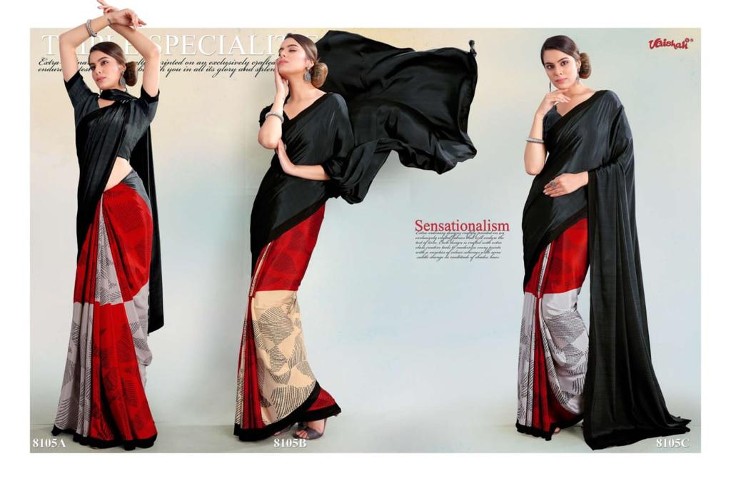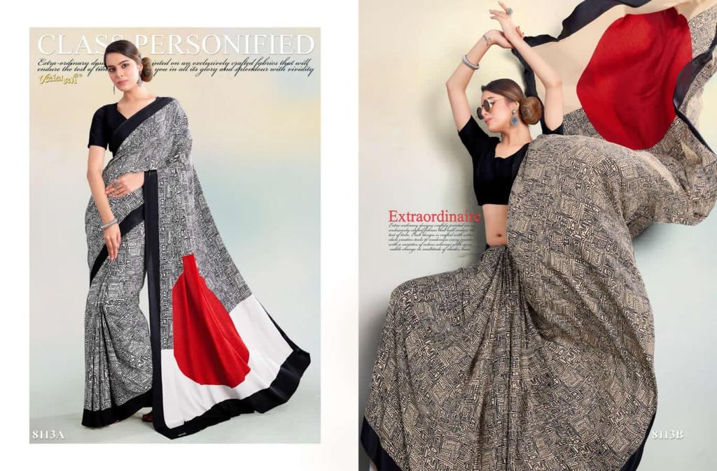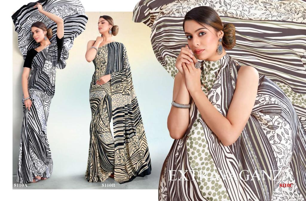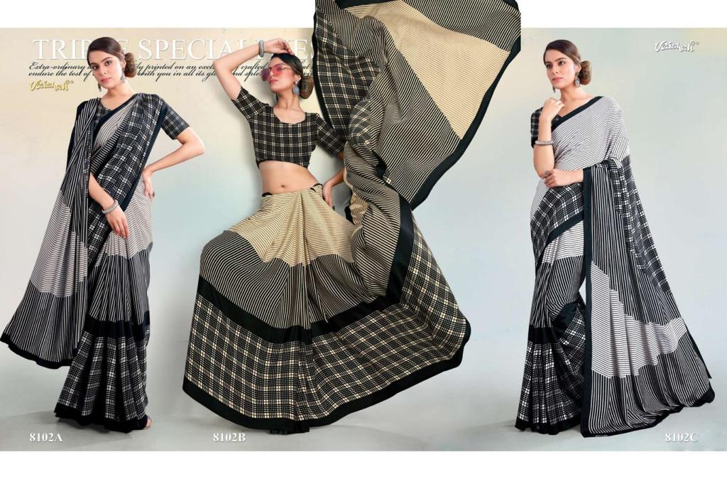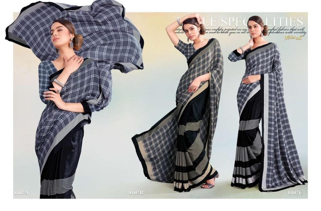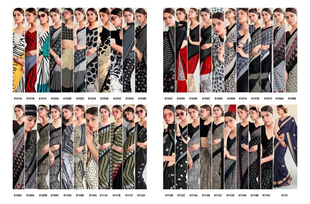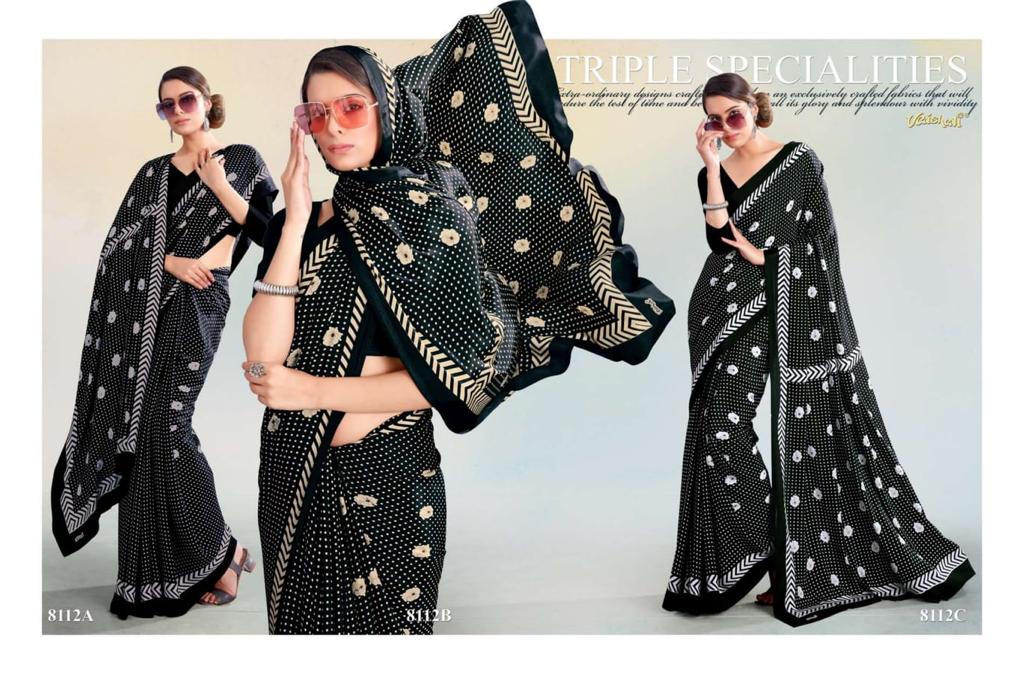 VAISHALI FASHION FABRICS (CRAPE SILK) FLORENCE BLACK AND WHITE CATALOGUE LONCH ? Rate- 618 per pcs GST 5% EXTRA SHIP EXTRA SINGLE AVAILABLE 100+Singles |
