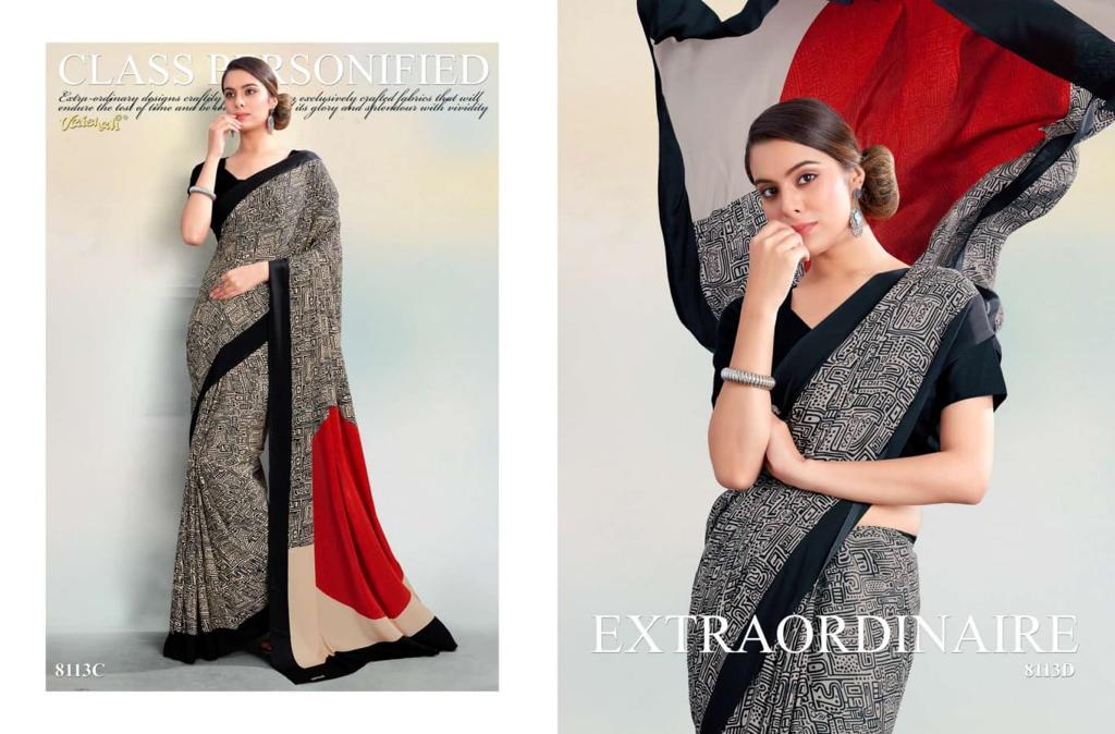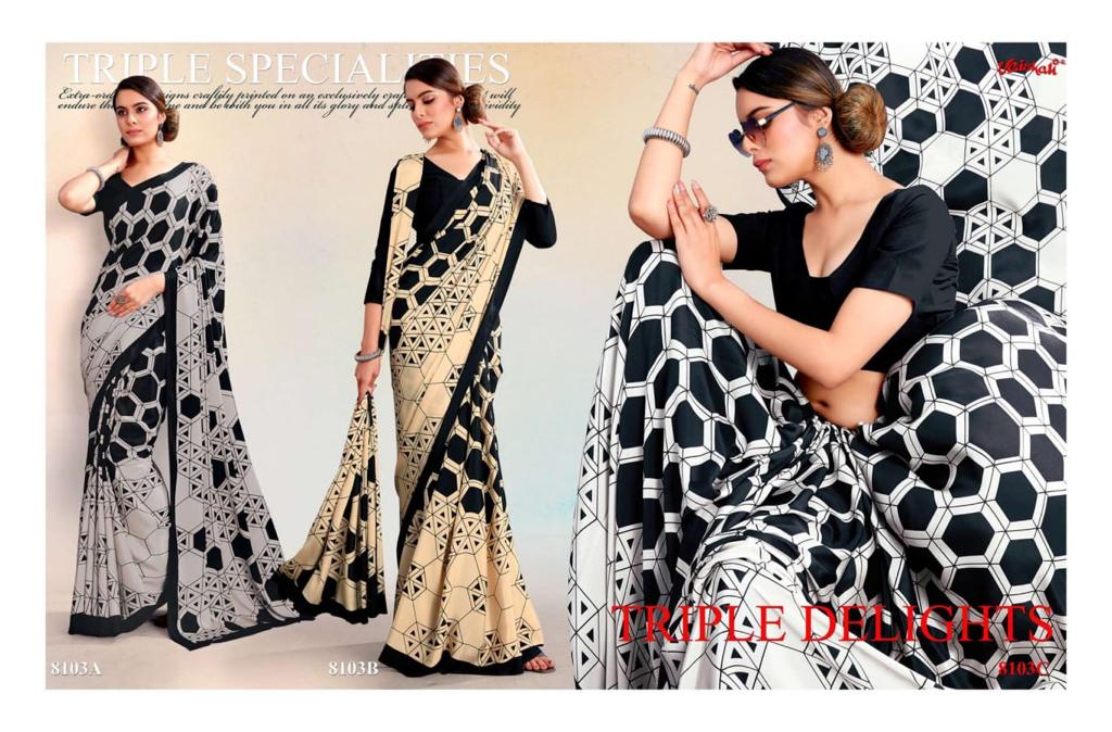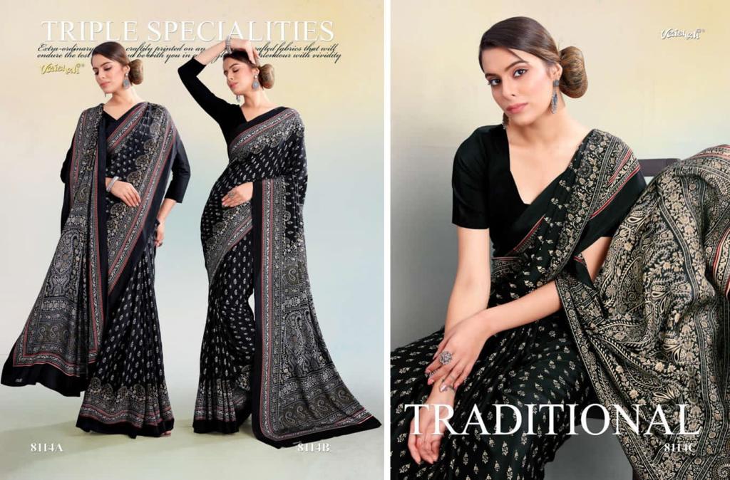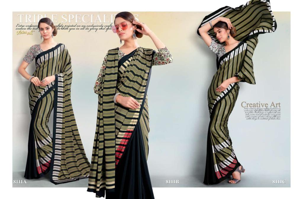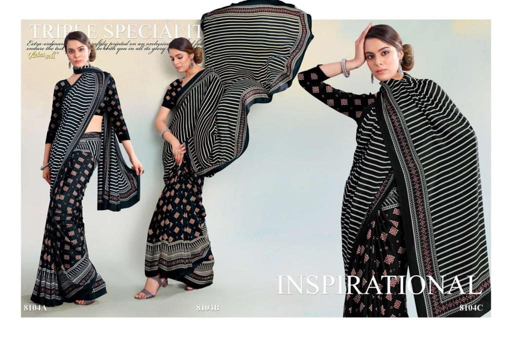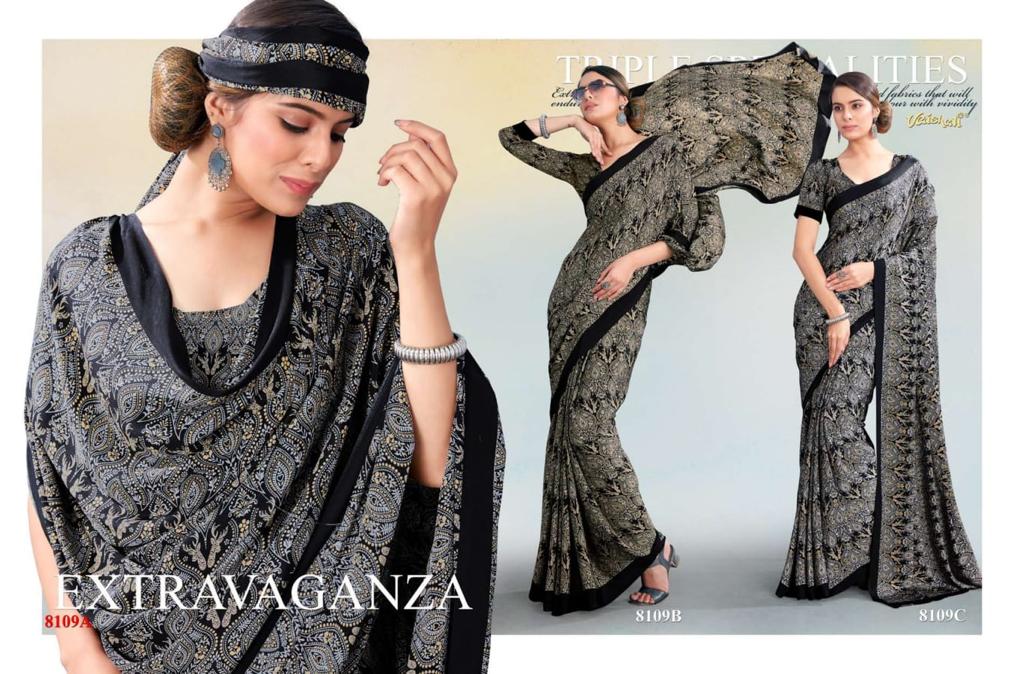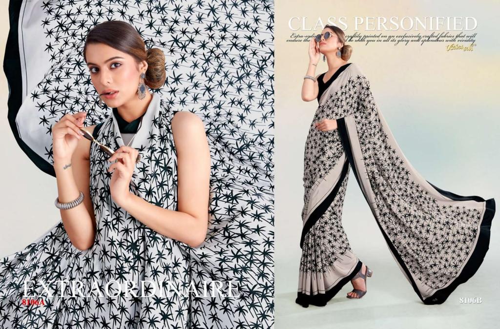 VAISHALI FASHION FABRICS (CRAPE SILK) FLORENCE BLACK AND WHITE CATALOGUE LONCH ? Rate- 618 per pcs GST 5% EXTRA SHIP EXTRA SINGLE AVAILABLE 100+Singles |