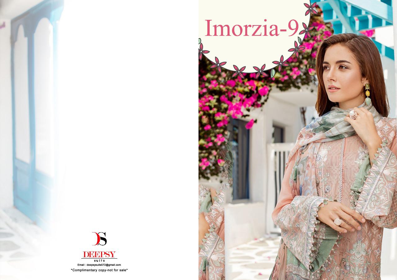 Imorzia 9 by deespy series 800101 to 800107 Georgette embroidered designer Pakistani suits wholesale supplier surat Fabrics details and price list attached Gst extra |