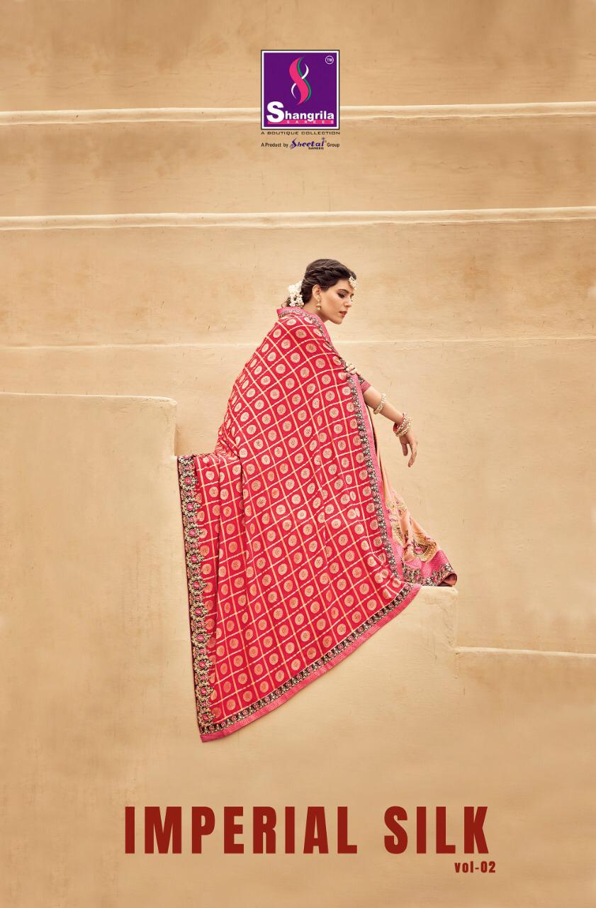 Buy Online Imperial Silk Vol 2 By Shangrila Banarasi Silk Wedding Collection Wholesale Supplier Surat 8 Pcs of Full Catalogue at Wholesale Price. Looking for Imperial Silk Vol 2 By Shangrila Banarasi Silk Wedding Collection Wholesale Supplier Surat Full Catalouge at Best Price? Buy Now Imperial Silk Vol 2 By Shangrila Banarasi Silk Wedding Collection Wholesale Supplier Surat at Wholesale Rate of Rs 10800 with Total 8 Pcs from authroized dealer and supplier of SHANGRILA Brand. Cost of Each piece is just only Rs 1350 which is very low and affordable price to resale the product in your retail store ,This is Surat based Wholesale Supplier & Dealer of SHANGRILA Brand. Click on Brand name to Know more about SHANGRILA Brand's products.Call or Whatsapp on 9898838984 for booking or enquiry