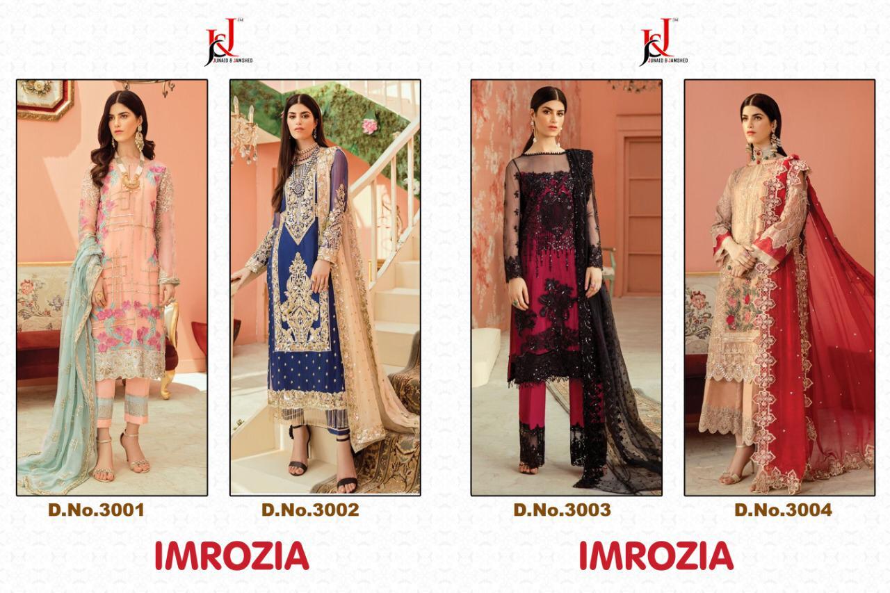 Buy Online Imrozia By J Nd J Pakistani Suits Wholesale Supplier And Dealer Surat 4 Pcs of Full Catalogue at Wholesale Price. Looking for Imrozia By J Nd J Pakistani Suits Wholesale Supplier And Dealer Surat Full Catalouge at Best Price? Buy Now Imrozia By J Nd J Pakistani Suits Wholesale Supplier And Dealer Surat at Wholesale Rate of Rs 5196 with Total 4 Pcs from authroized dealer and supplier of Brand. Cost of Each piece is just only Rs 1299 which is very low and affordable price to resale the product in your retail store ,This is Surat based Wholesale Supplier & Dealer of Brand. Click on Brand name to Know more about Brand's products.Call or Whatsapp on 9898838984 for booking or enquiry