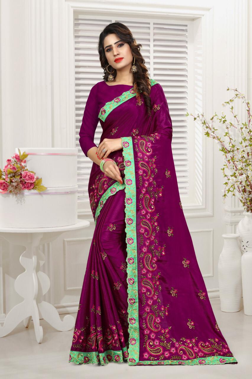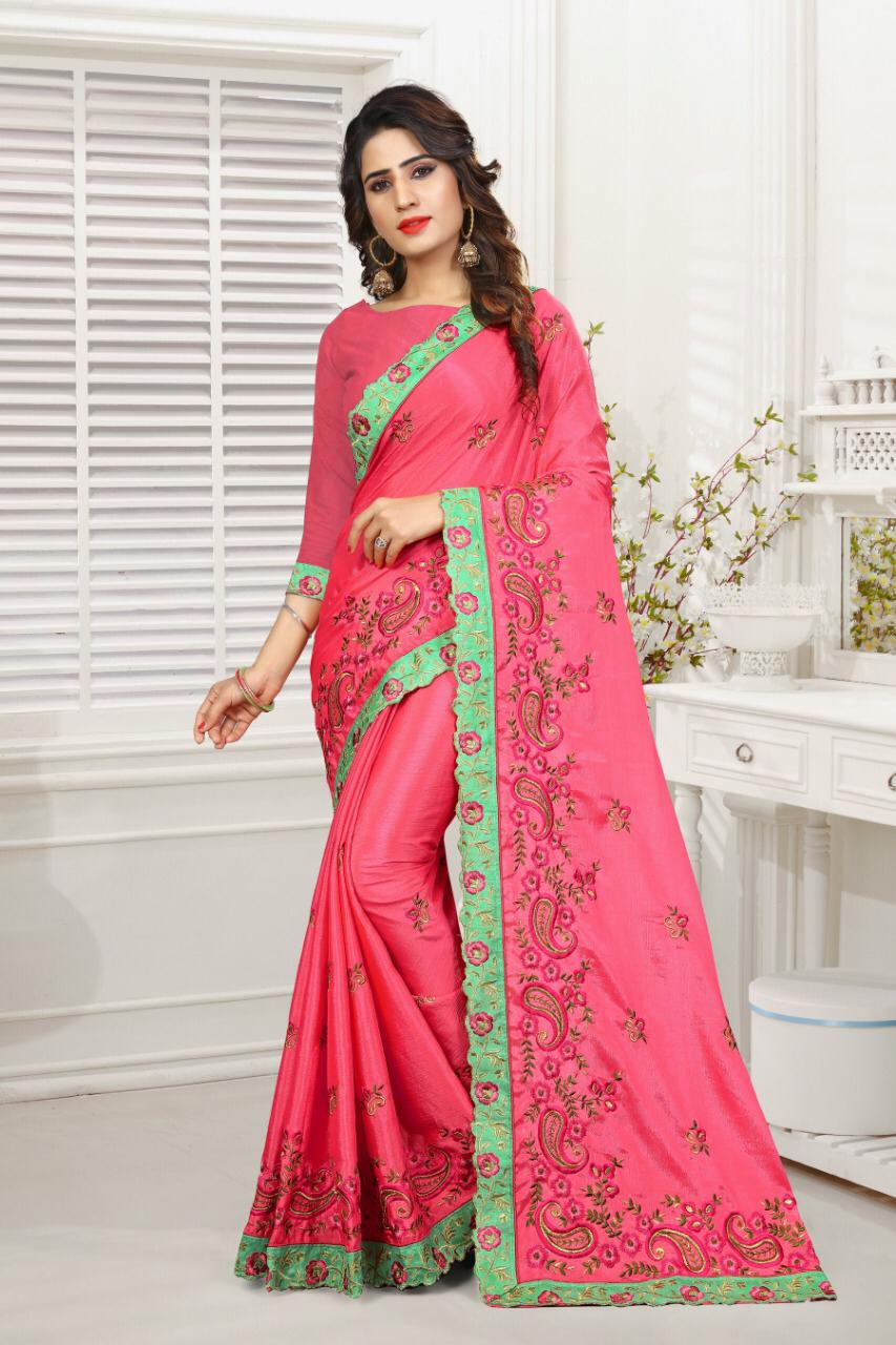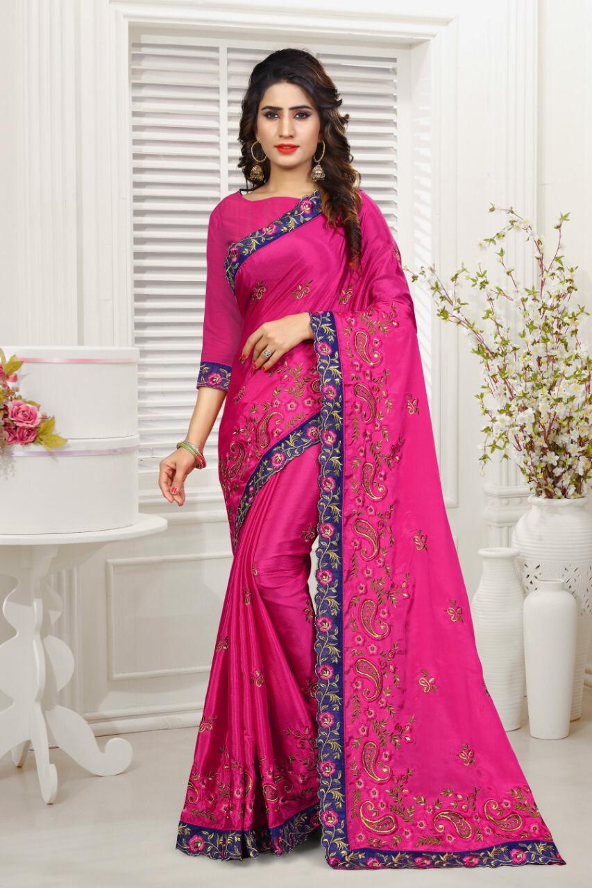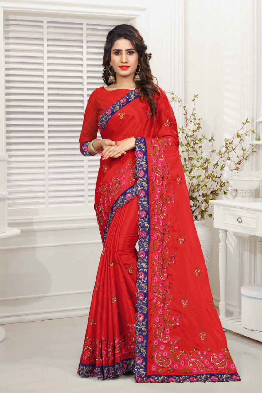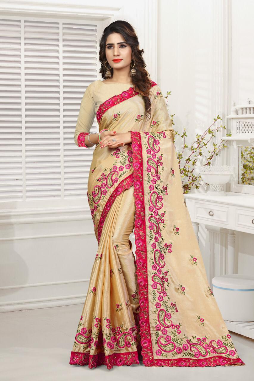 Brand - Lady Ethenic. New catalog launch. Inaayat Chinnon saree with embroidery work Delivery from tomorrow Single Rate 1595 per Pcs . Single avaialble. GST 5 Percent Extra |