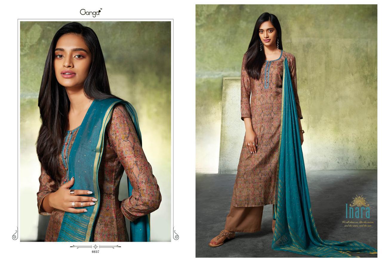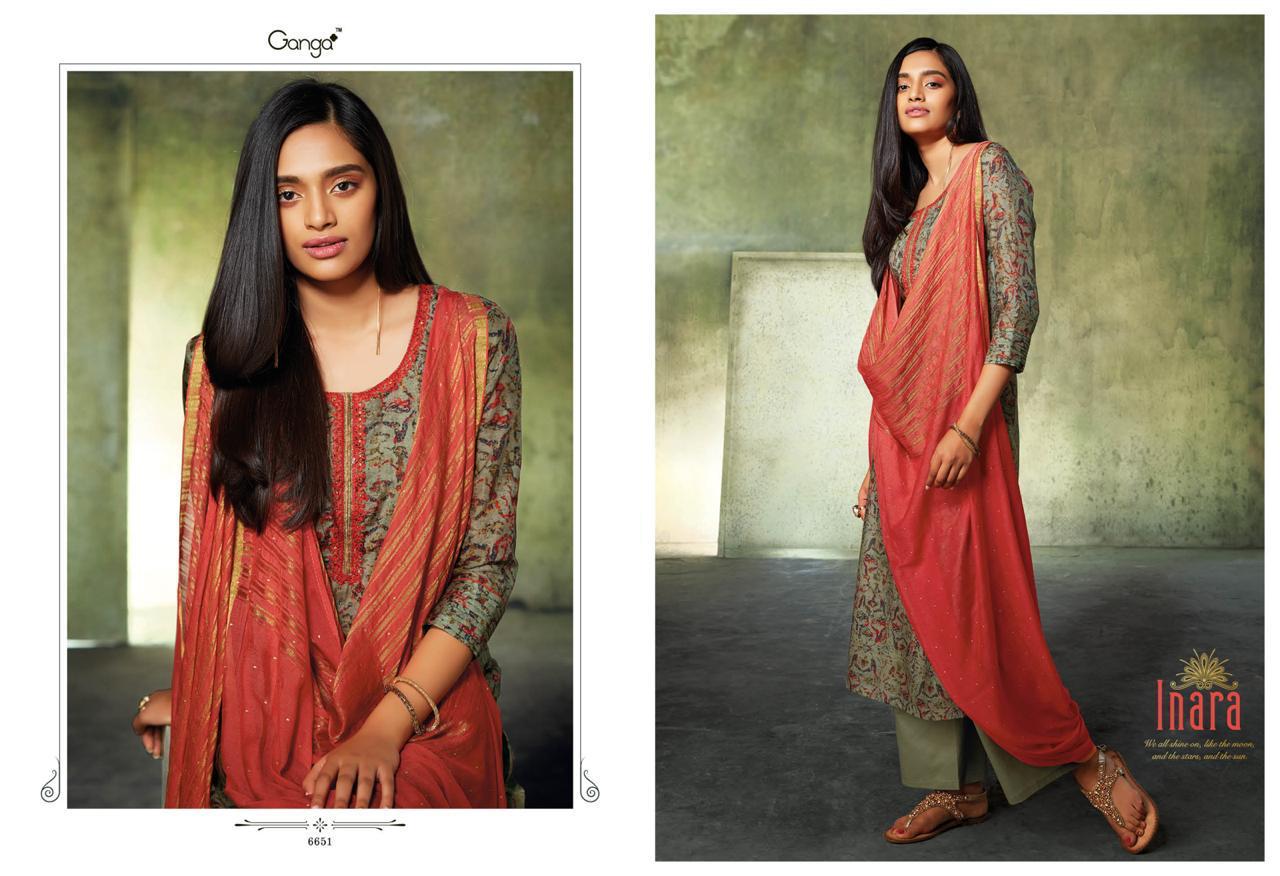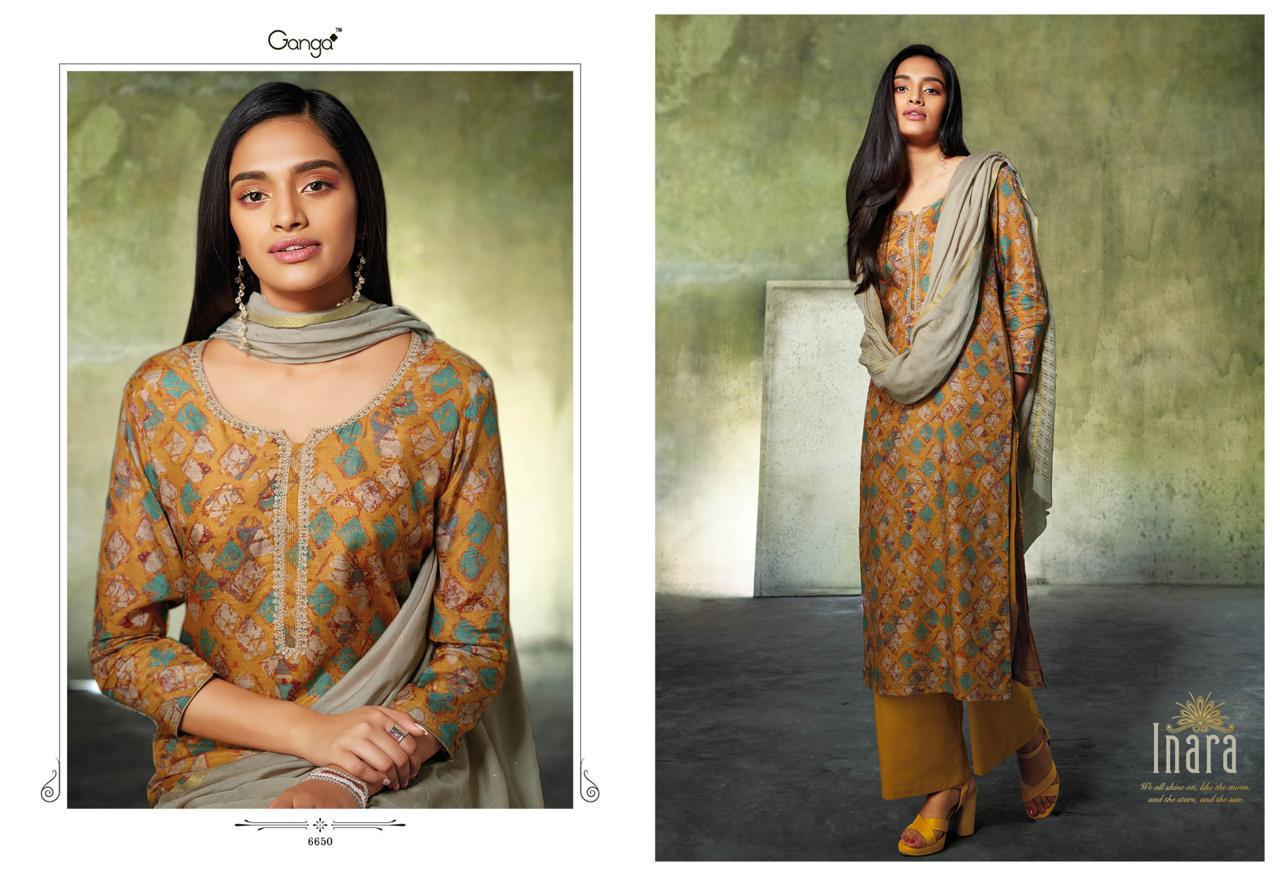 Inara By Ganga 6650 Series Fancy Party Wear Silk Printed Salwar Kameez Catlog Wholesale Dealer Surat