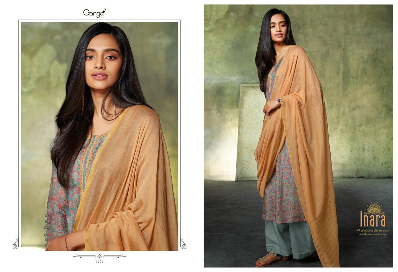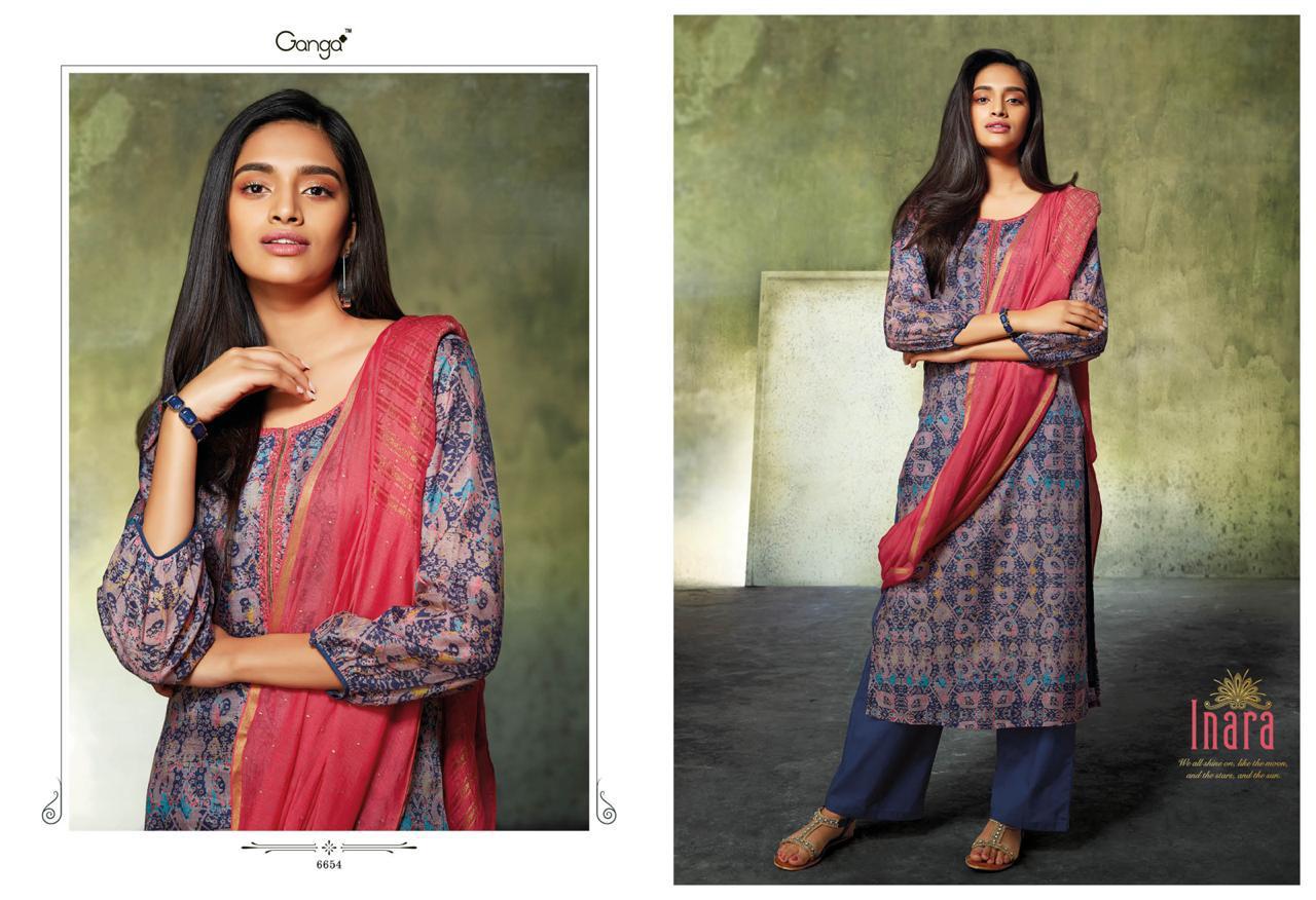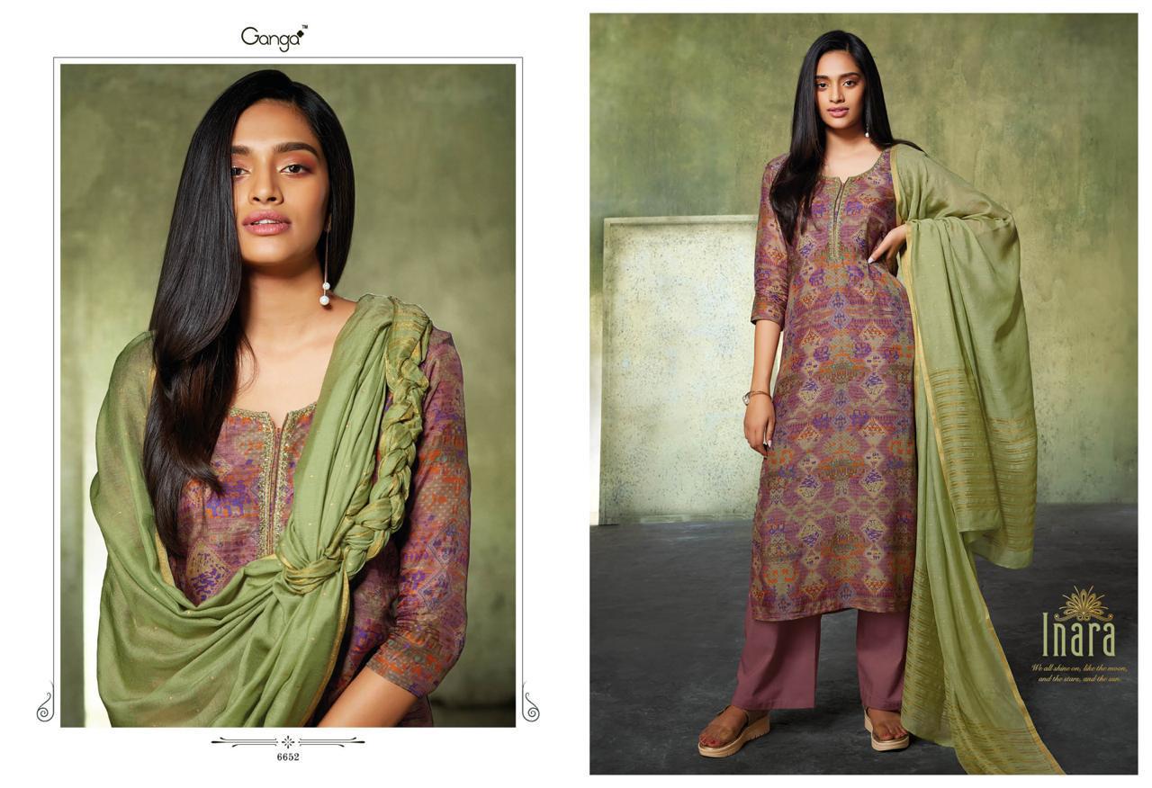 Inara By Ganga 6650 Series Fancy Party Wear Silk Printed Salwar Kameez Catlog Wholesale Dealer Surat