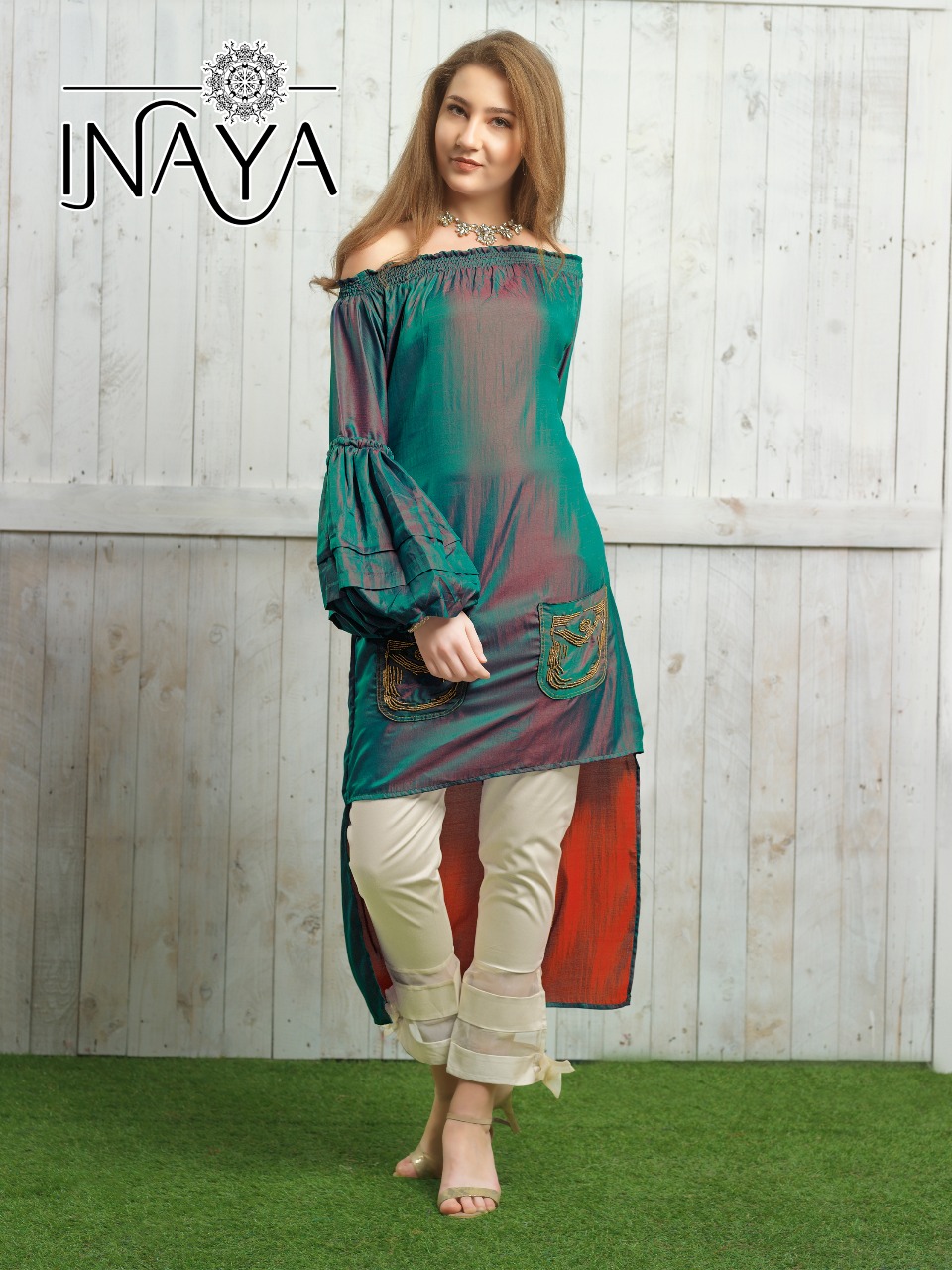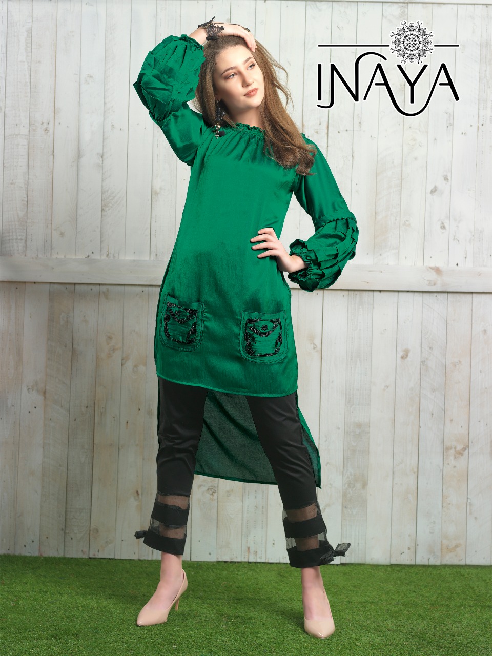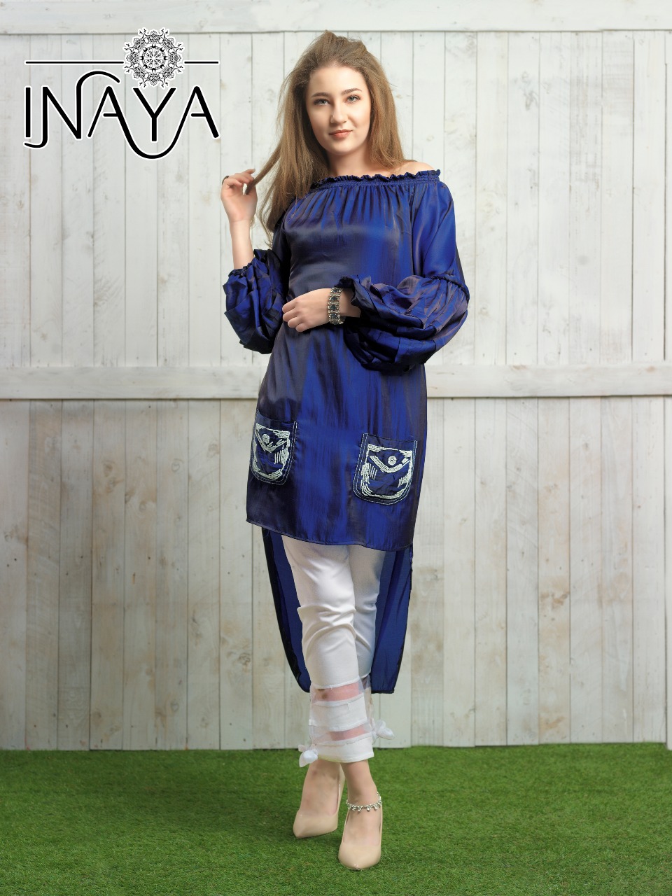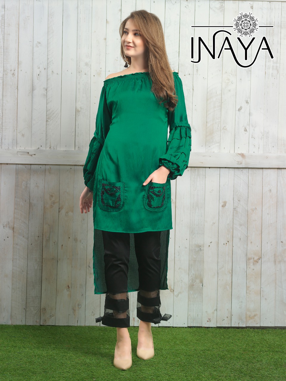 Luxury p?et Collection 2 For our valuable Customer we our launching our Designer Tunic with Cigarette Pants Inaya by Studio Libas Description ??????? Up n Down Designer Tunic can wear in 2 ways Drop shoulder & Boat neck.... Stunning Handwork on pocket with unique Balloon Sleeves with Attractive Bow Pants Details ??????? Top:- Silk satin Bottom :- pure cotton with stretch for comfortability. ... Colour :- Bottle green , Navy blue , Peacock green maroon Top L size chest (38) Bottom L size (28-34) Top xl size chest (42) Bottom xl size (36-42) Rate 1250/-per pcs +5% GST extra . Full set only (3 pair of same size n different colours) Plz note Limited Stock |