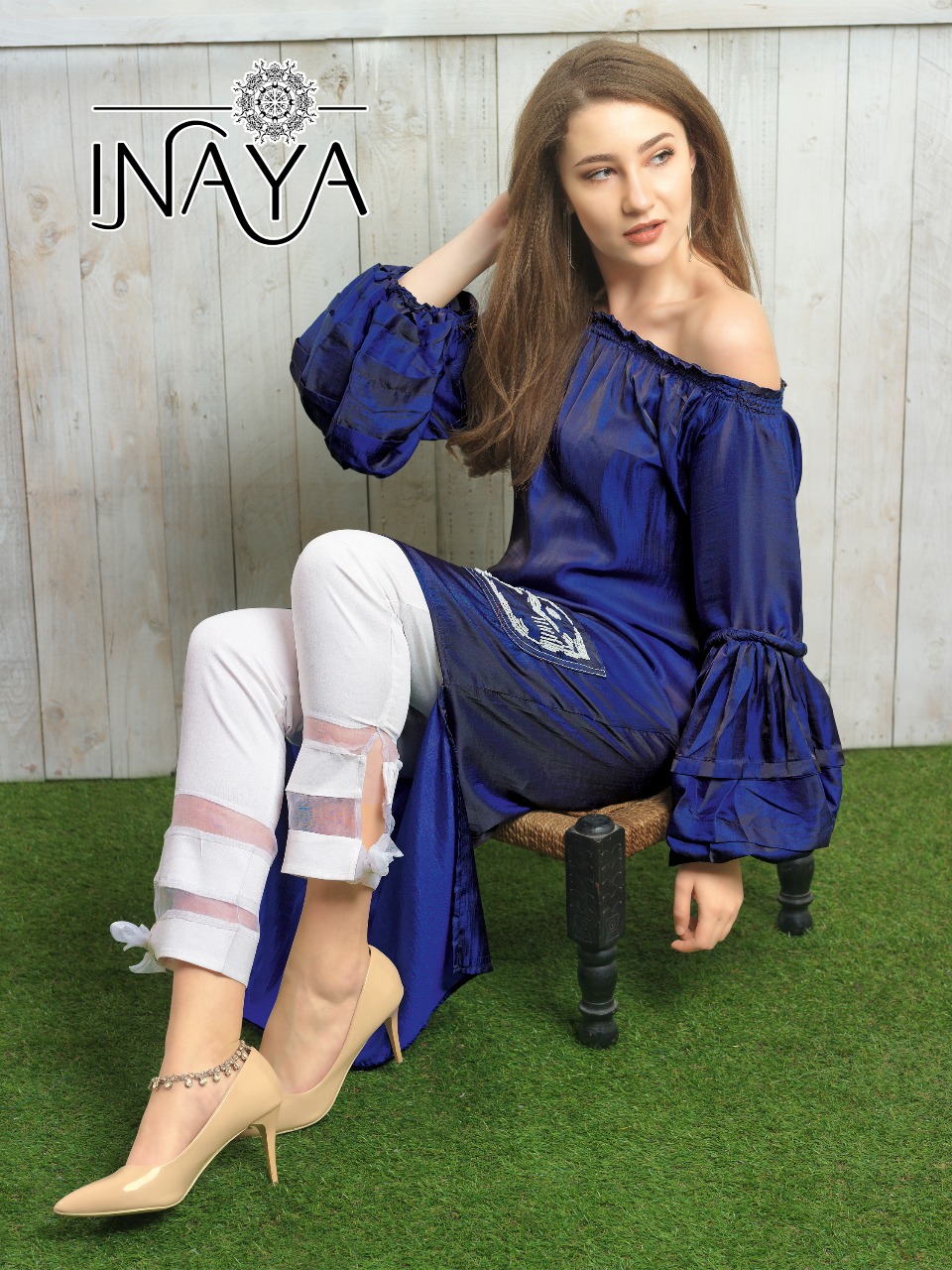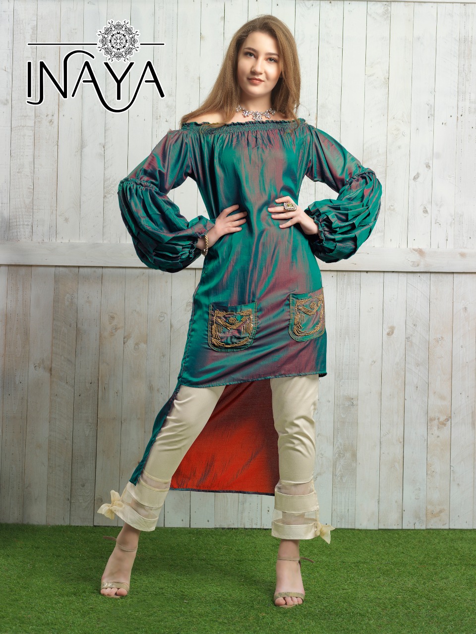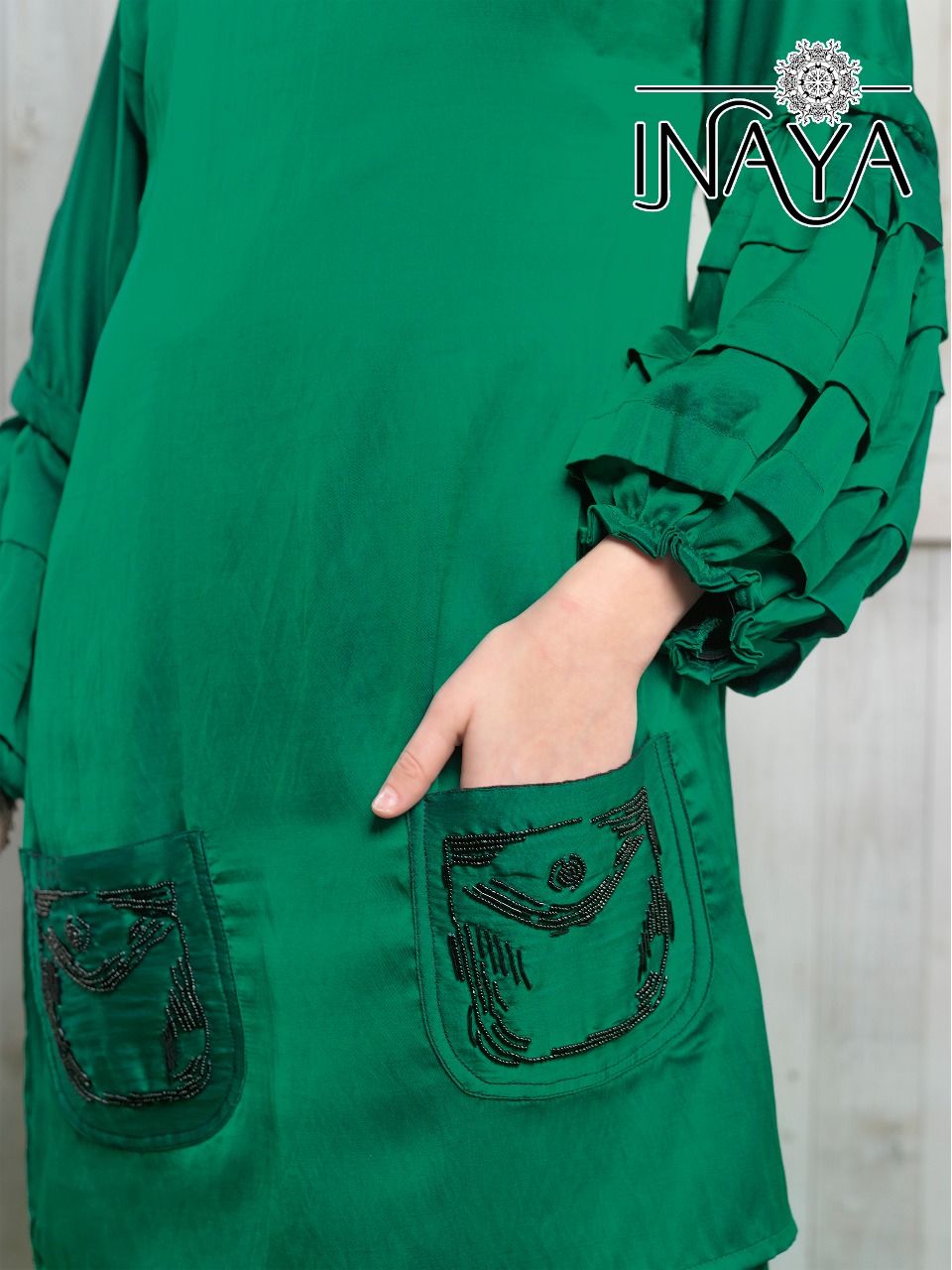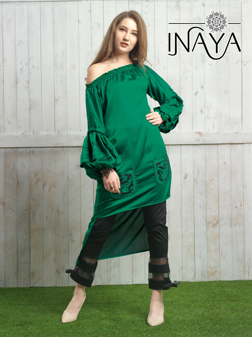 Luxury p?et Collection 2 For our valuable Customer we our launching our Designer Tunic with Cigarette Pants Inaya by Studio Libas Description ??????? Up n Down Designer Tunic can wear in 2 ways Drop shoulder & Boat neck.... Stunning Handwork on pocket with unique Balloon Sleeves with Attractive Bow Pants Details ??????? Top:- Silk satin Bottom :- pure cotton with stretch for comfortability. ... Colour :- Bottle green , Navy blue , Peacock green maroon Top L size chest (38) Bottom L size (28-34) Top xl size chest (42) Bottom xl size (36-42) Rate 1250/-per pcs +5% GST extra . Full set only (3 pair of same size n different colours) Plz note Limited Stock |