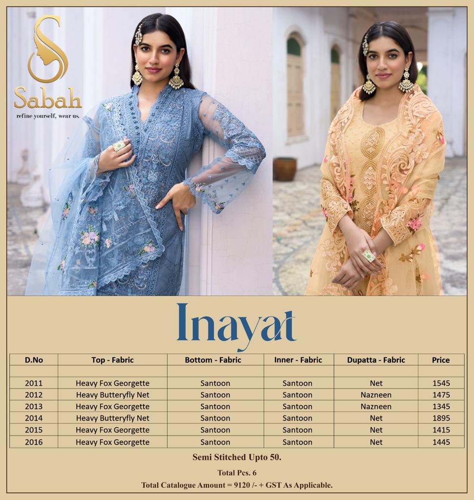 Buy Online Inayat By Sabah Heavy Georgette Suit Single Avilable 6 Pcs of Full Catalogue at Wholesale Price. Looking for Inayat By Sabah Heavy Georgette Suit Single Avilable Full Catalouge at Best Price? Buy Now Inayat By Sabah Heavy Georgette Suit Single Avilable at Wholesale Rate of Rs 0 with Total 6 Pcs from authroized dealer and supplier of Brand. Cost of Each piece is just only Rs 0 which is very low and affordable price to resale the product in your retail store ,This is Surat based Wholesale Supplier & Dealer of Brand. Click on Brand name to Know more about Brand's products.Call or Whatsapp on 9898838984 for booking or enquiry