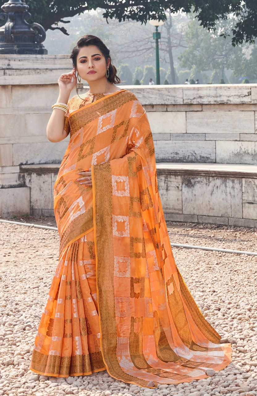 BRAND: SANGAM PRINTS CATALOG: INDIAN BEAUTY FABRIC: COTTON HANDLOOM WITH ZARI WORK SINGLE RATE: 1099+5%GST FULL CATALOG RATE ASK PERSONALLY |