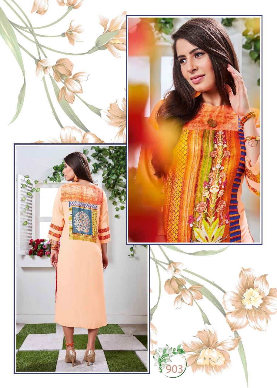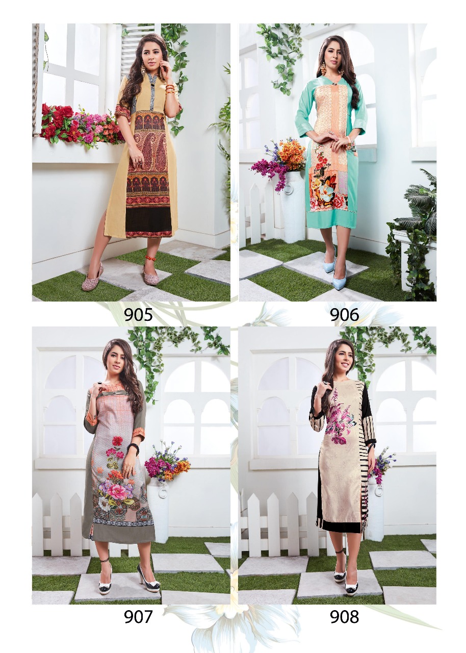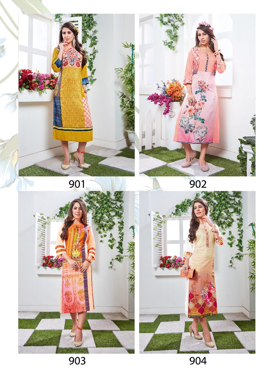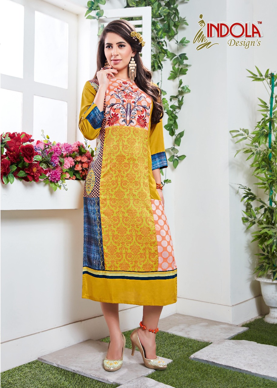 Indola Designs Shades 901 Series Reyon Kurti Catlog Wholesale Dealer Surat