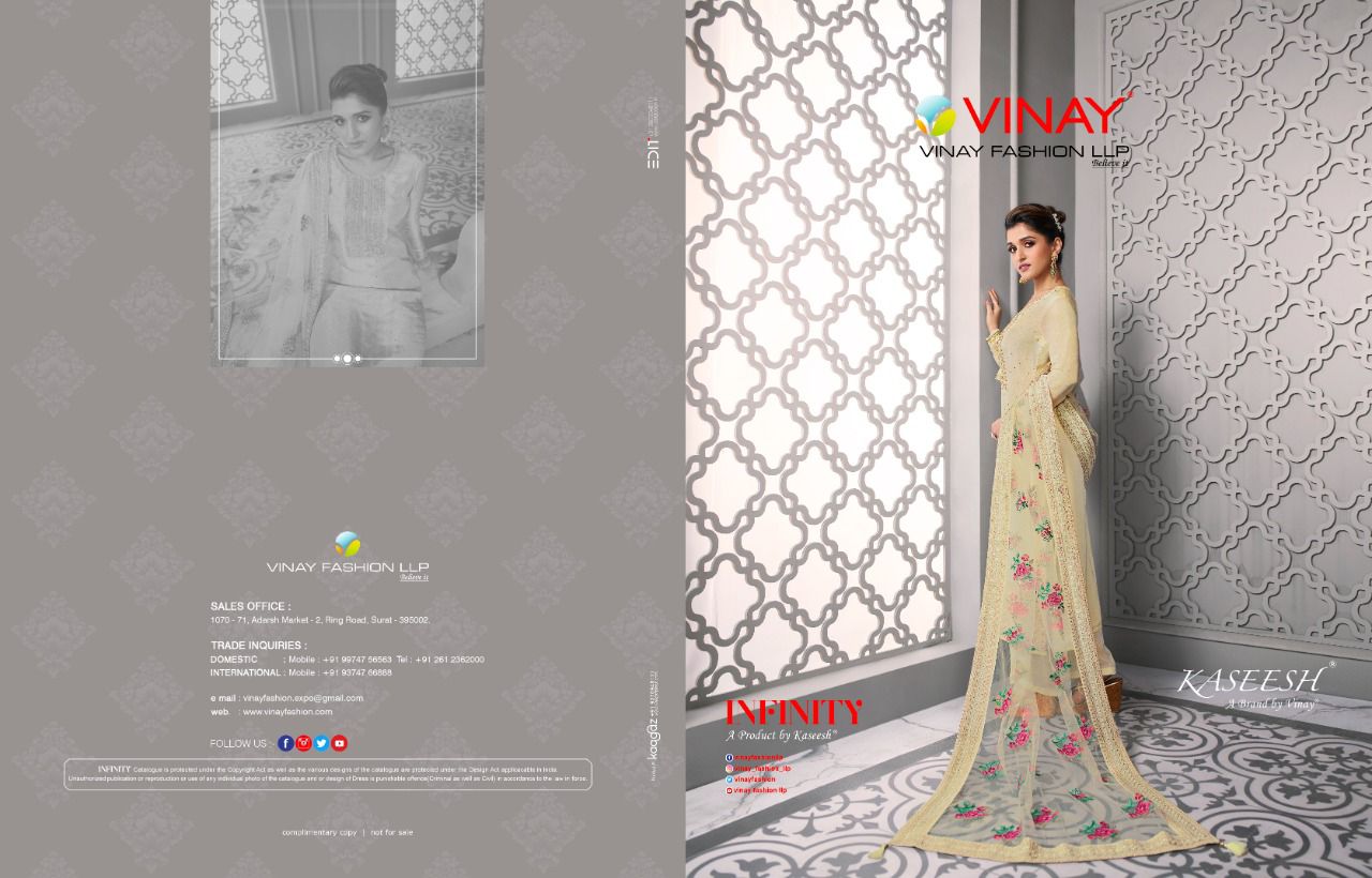 Buy Online Infinity By Vinay Fashion Wholesale Supplier Traders In Surat 8 Pcs of Full Catalogue at Wholesale Price. Looking for Infinity By Vinay Fashion Wholesale Supplier Traders In Surat Full Catalouge at Best Price? Buy Now Infinity By Vinay Fashion Wholesale Supplier Traders In Surat at Wholesale Rate of Rs 14760 with Total 8 Pcs from authroized dealer and supplier of Brand. Cost of Each piece is just only Rs 1845 which is very low and affordable price to resale the product in your retail store ,This is Surat based Wholesale Supplier & Dealer of Brand. Click on Brand name to Know more about Brand's products.Call or Whatsapp on 9898838984 for booking or enquiry
