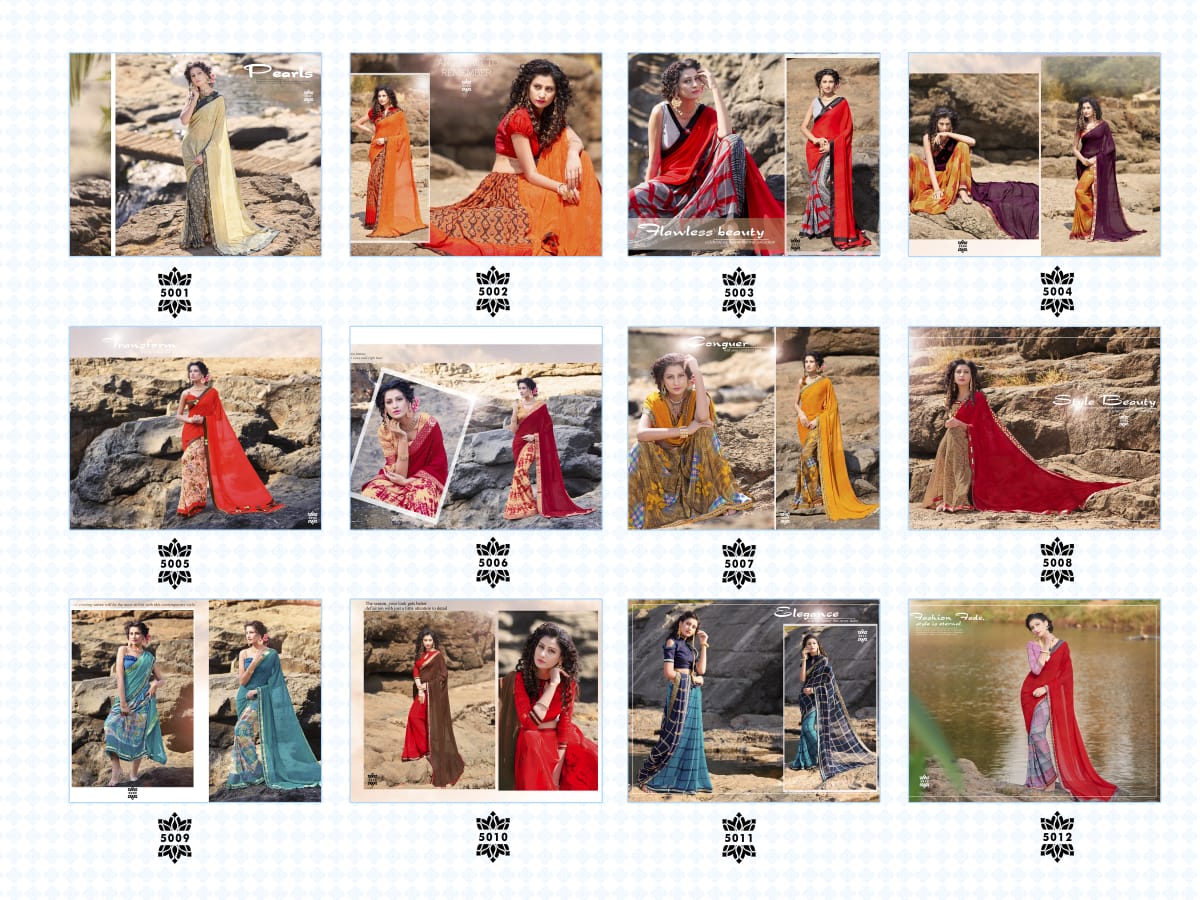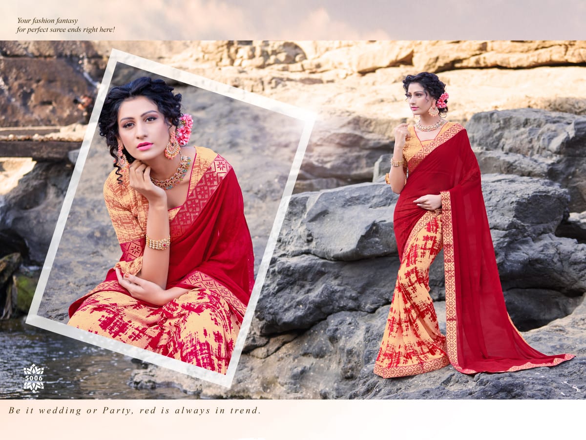 Buy Online Infinity Vol 5 By Shyamvi Sarees 5001 Series Fancy Weightless Printed Saree Collection Wholesaler Surat 12 Pcs of Full Catalogue at Wholesale Price. Looking for Infinity Vol 5 By Shyamvi Sarees 5001 Series Fancy Weightless Printed Saree Collection Wholesaler Surat Full Catalouge at Best Price? Buy Now Infinity Vol 5 By Shyamvi Sarees 5001 Series Fancy Weightless Printed Saree Collection Wholesaler Surat at Wholesale Rate of Rs 5940 with Total 12 Pcs from authroized dealer and supplier of Brand. Cost of Each piece is just only Rs 495 which is very low and affordable price to resale the product in your retail store ,This is Surat based Wholesale Supplier & Dealer of Brand. Click on Brand name to Know more about Brand's products.Call or Whatsapp on 9898838984 for booking or enquiry