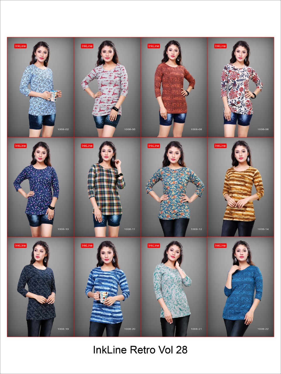 Buy Online Inkline Retro Vol 28 By Varun Fancy Printed Top Collection Wholesale Dealer And Supplier Surat 12 Pcs of Full Catalogue at Wholesale Price. Looking for Inkline Retro Vol 28 By Varun Fancy Printed Top Collection Wholesale Dealer And Supplier Surat Full Catalouge at Best Price? Buy Now Inkline Retro Vol 28 By Varun Fancy Printed Top Collection Wholesale Dealer And Supplier Surat at Wholesale Rate of Rs 2400 with Total 12 Pcs from authroized dealer and supplier of VARUN Brand. Cost of Each piece is just only Rs 200 which is very low and affordable price to resale the product in your retail store ,This is Surat based Wholesale Supplier & Dealer of VARUN Brand. Click on Brand name to Know more about VARUN Brand's products.Call or Whatsapp on 9898838984 for booking or enquiry
