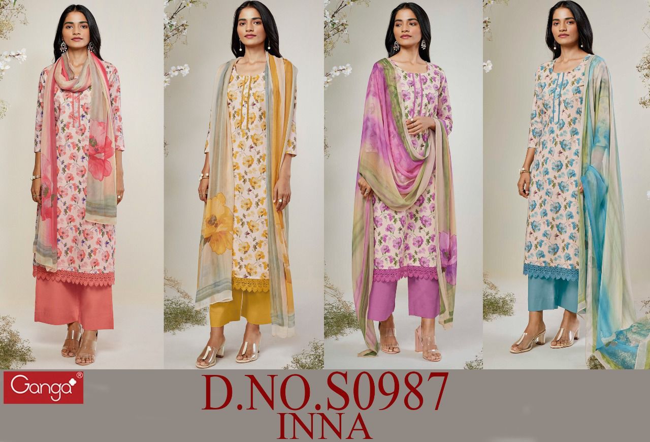 Buy Online Inna 987 By Ganga Cotton Suit Manufacturer Traders And Dealer From India 4 Pcs of Full Catalogue at Wholesale Price. Looking for Inna 987 By Ganga Cotton Suit Manufacturer Traders And Dealer From India Full Catalouge at Best Price? Buy Now Inna 987 By Ganga Cotton Suit Manufacturer Traders And Dealer From India at Wholesale Rate of Rs 0 with Total 4 Pcs from authroized dealer and supplier of GANGA Brand. Cost of Each piece is just only Rs 0 which is very low and affordable price to resale the product in your retail store ,This is Surat based Wholesale Supplier & Dealer of GANGA Brand. Click on Brand name to Know more about GANGA Brand's products.Call or Whatsapp on 9898838984 for booking or enquiry