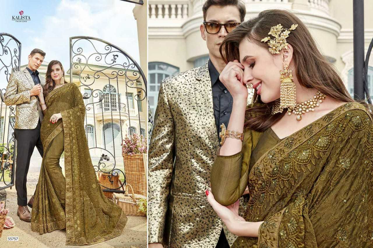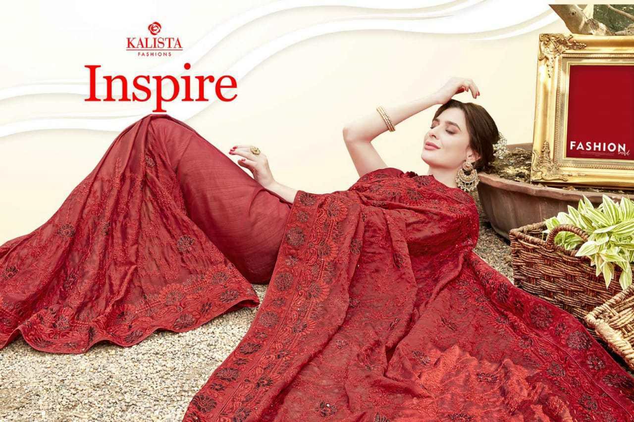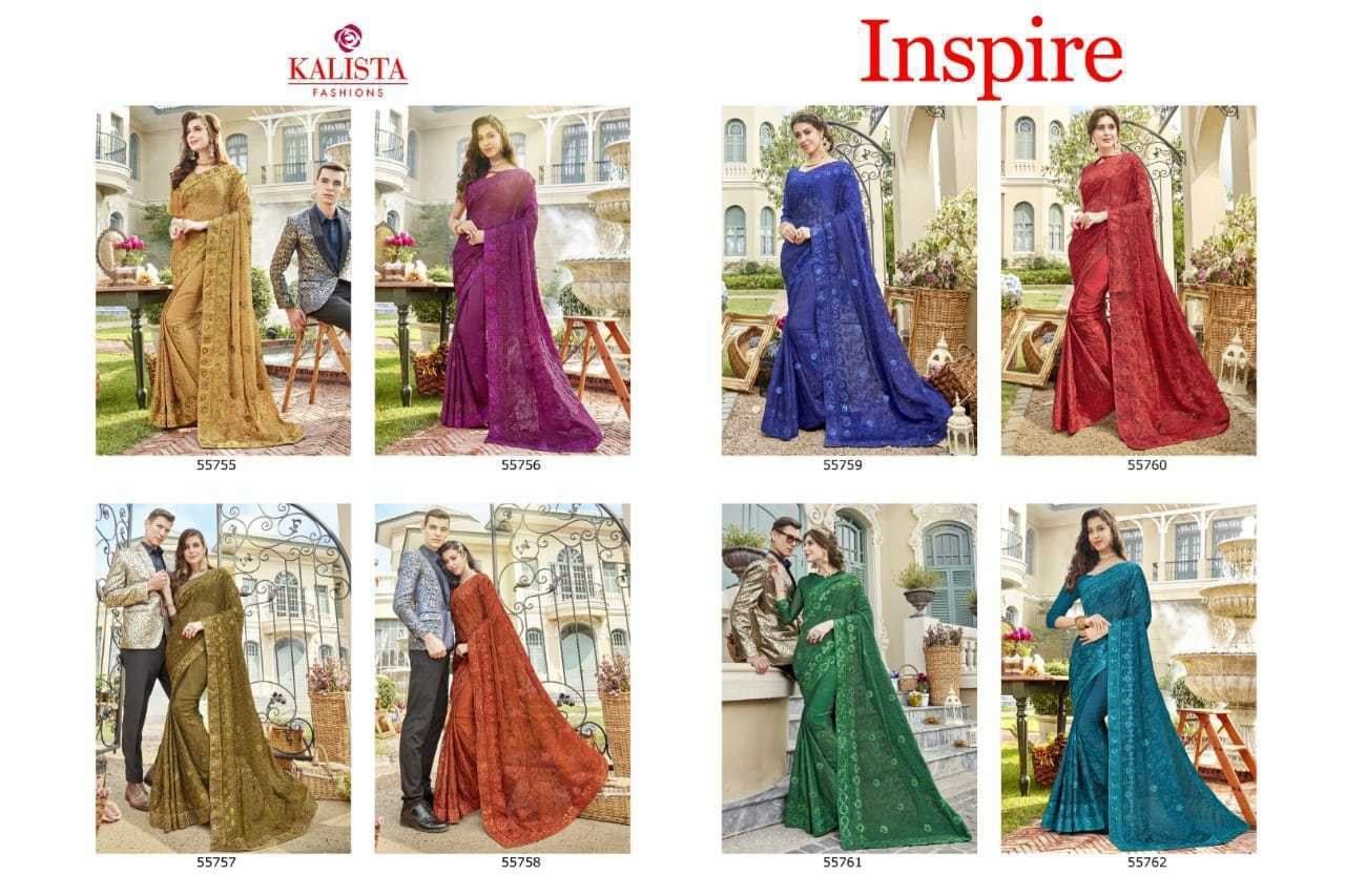 Buy Online Inspire By Kalista Fashions Fancy Party Wear Sarees Wholesale Supplier India 8 Pcs of Full Catalogue at Wholesale Price. Looking for Inspire By Kalista Fashions Fancy Party Wear Sarees Wholesale Supplier India Full Catalouge at Best Price? Buy Now Inspire By Kalista Fashions Fancy Party Wear Sarees Wholesale Supplier India at Wholesale Rate of Rs 9200 with Total 8 Pcs from authroized dealer and supplier of KALISTA FASHION Brand. Cost of Each piece is just only Rs 1150 which is very low and affordable price to resale the product in your retail store ,This is Surat based Wholesale Supplier & Dealer of KALISTA FASHION Brand. Click on Brand name to Know more about KALISTA FASHION Brand's products.Call or Whatsapp on 9898838984 for booking or enquiry