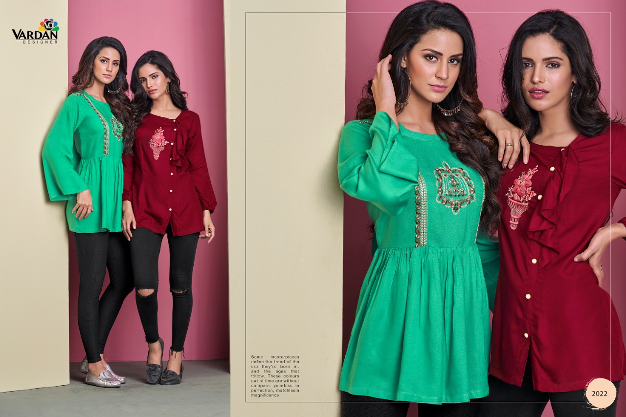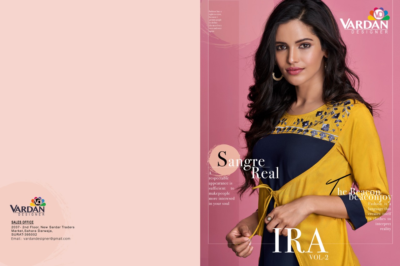Buy Online Ira Vol 2 By Vardan 2021 Series Fancy Reyon Short Kurti Collection Wholesaler Surat 12 Pcs of Full Catalogue at Wholesale Price. Looking for Ira Vol 2 By Vardan 2021 Series Fancy Reyon Short Kurti Collection Wholesaler Surat Full Catalouge at Best Price? Buy Now Ira Vol 2 By Vardan 2021 Series Fancy Reyon Short Kurti Collection Wholesaler Surat at Wholesale Rate of Rs 5580 with Total 12 Pcs from authroized dealer and supplier of VARDAN DESIGNER Brand. Cost of Each piece is just only Rs 465 which is very low and affordable price to resale the product in your retail store ,This is Surat based Wholesale Supplier & Dealer of VARDAN DESIGNER Brand. Click on Brand name to Know more about VARDAN DESIGNER Brand's products.Call or Whatsapp on 9898838984 for booking or enquiry