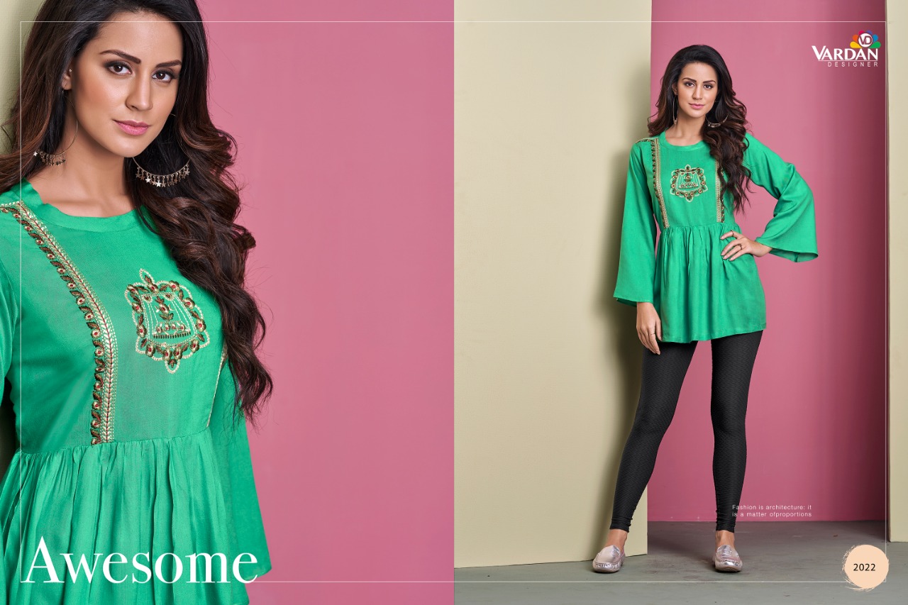 Ira Vol 2 By Vardan 2021 Series Fancy Reyon Short Kurti Collection Wholesaler Surat