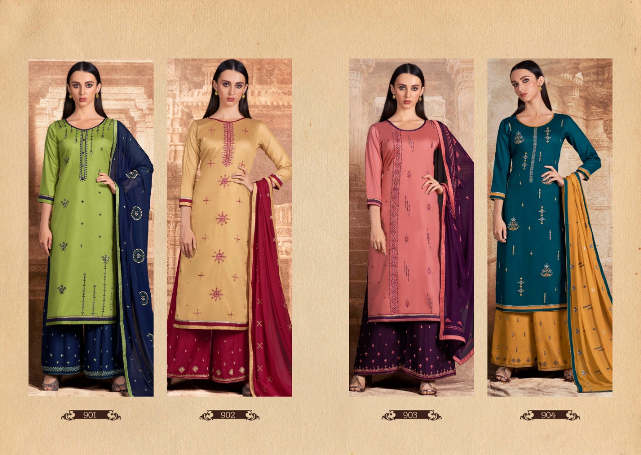? *Kalarang.* has launched _Catalog name _: *Iris* ? _Fabric Details_ ? ?Top:- JAM SILK COTTON WITH HEAVY EMBROIDERY WORK ?Bottom:- RAYON WITH EMBROIDERY WORK READYWEAR PLAZO (STITCHED) ?Dupatta:- NAZNEEN WITH WORK ?Total Design:- 4 Rate -799 per pcs . Set To Set. GST 5 Percent Extra ?Dispatching 5 to 6 days later ?Booking started from now... ?Order yours soon.... |