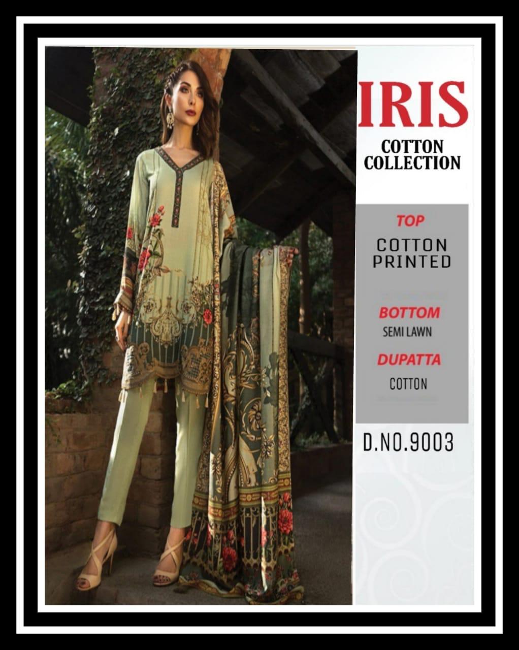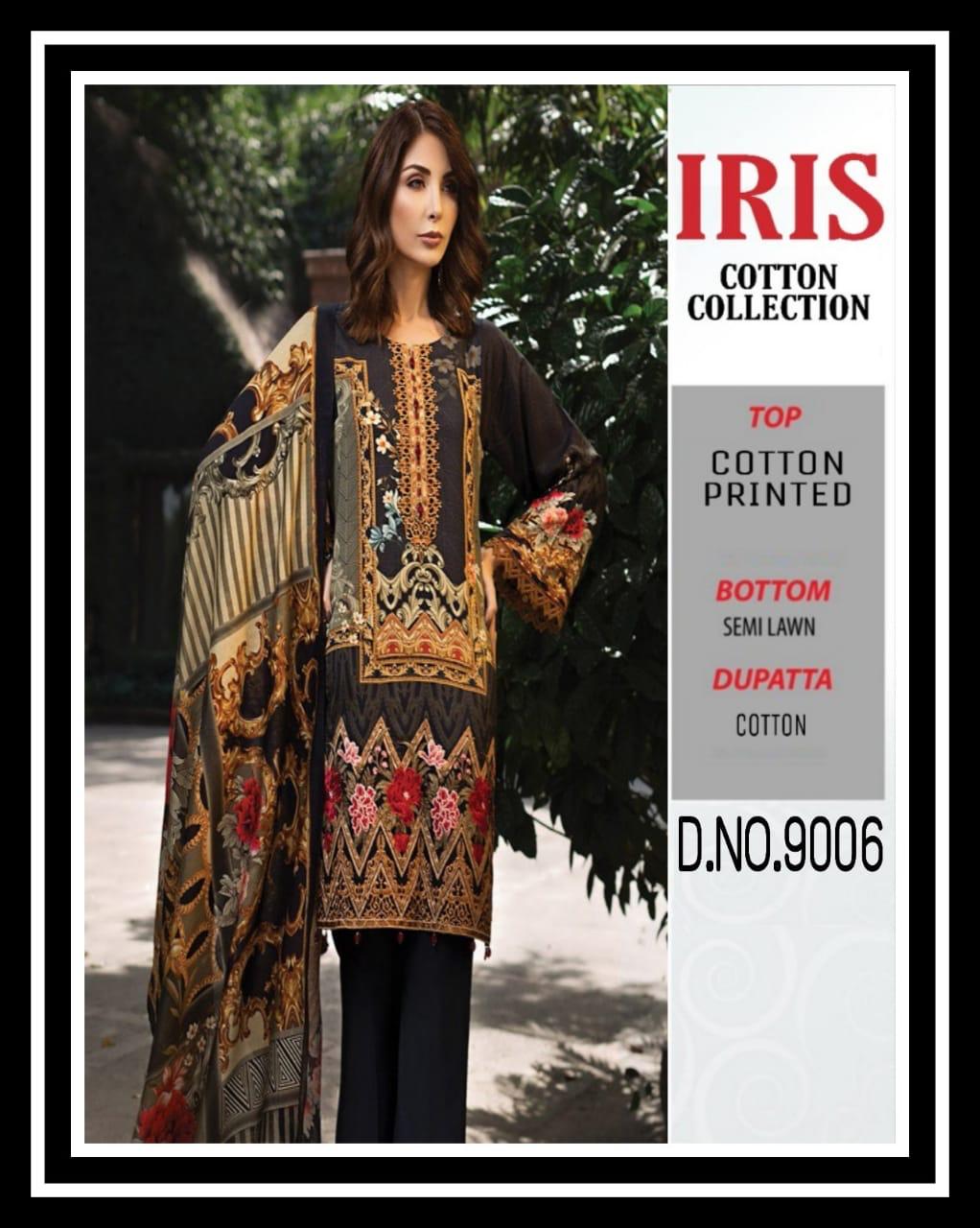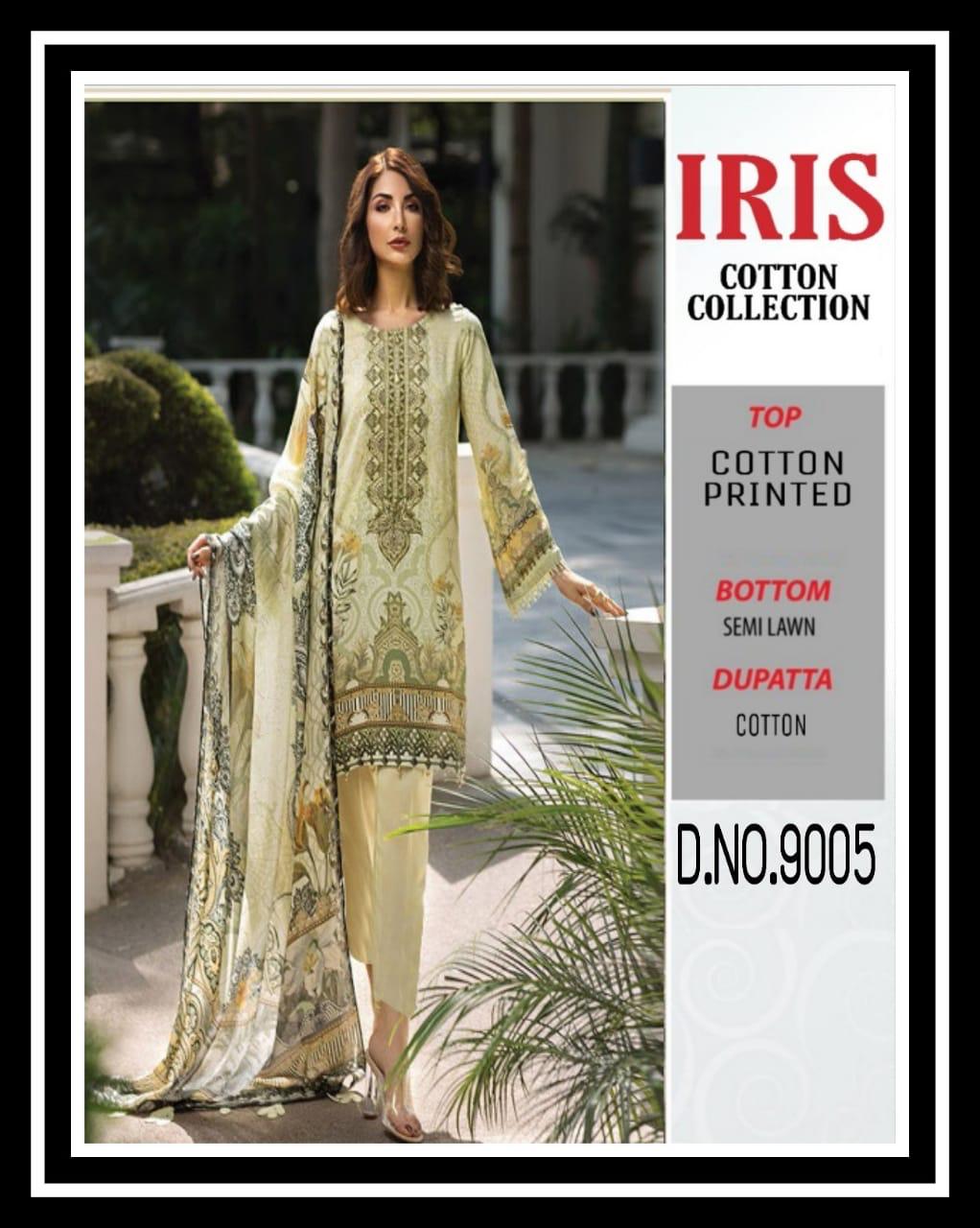 Buy Online Iris Cotton Collection 9001 Series Fancy Cotton Printed Salwar Kameez Catlog Wholesaler Surat 10 Pcs of Full Catalogue at Wholesale Price. Looking for Iris Cotton Collection 9001 Series Fancy Cotton Printed Salwar Kameez Catlog Wholesaler Surat Full Catalouge at Best Price? Buy Now Iris Cotton Collection 9001 Series Fancy Cotton Printed Salwar Kameez Catlog Wholesaler Surat at Wholesale Rate of Rs 2900 with Total 10 Pcs from authroized dealer and supplier of Brand. Cost of Each piece is just only Rs 290 which is very low and affordable price to resale the product in your retail store ,This is Surat based Wholesale Supplier & Dealer of Brand. Click on Brand name to Know more about Brand's products.Call or Whatsapp on 9898838984 for booking or enquiry