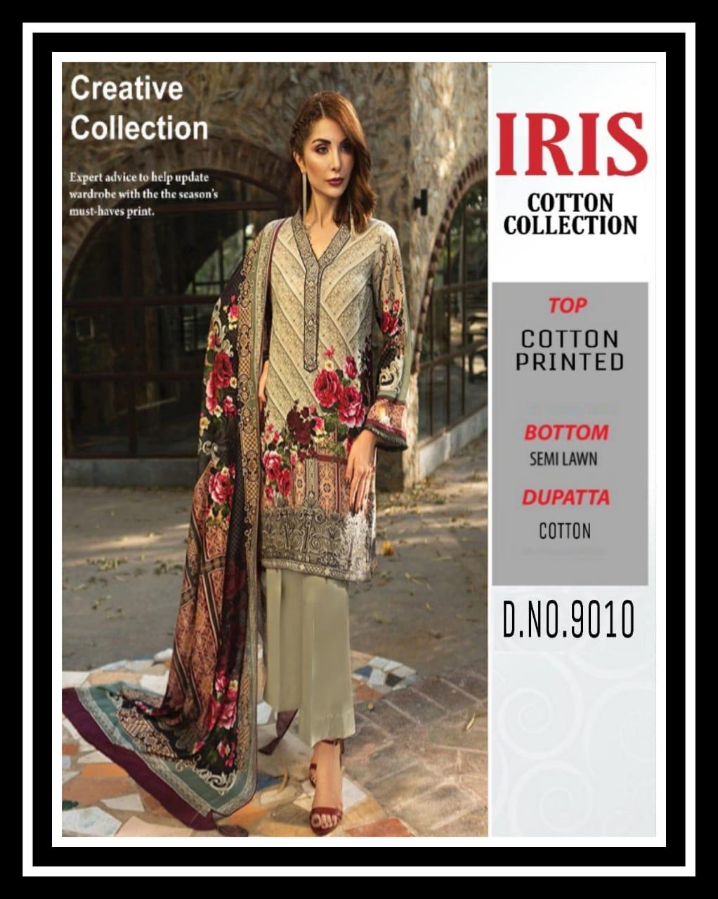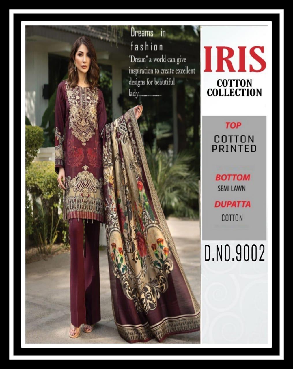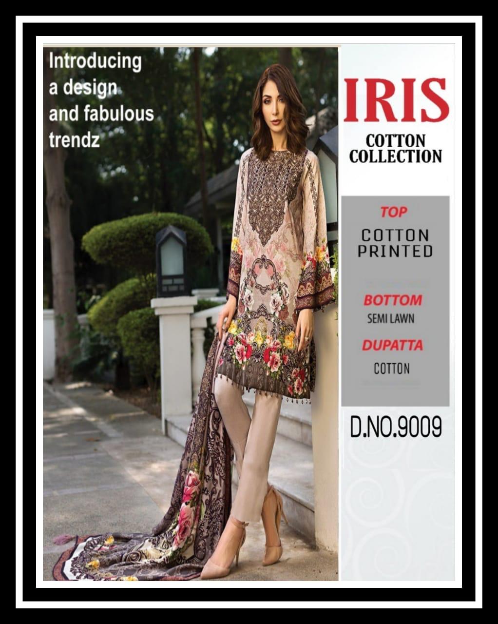Buy Online Iris Cotton Collection 9001 Series Fancy Cotton Printed Salwar Kameez Catlog Wholesaler Surat 10 Pcs of Full Catalogue at Wholesale Price. Looking for Iris Cotton Collection 9001 Series Fancy Cotton Printed Salwar Kameez Catlog Wholesaler Surat Full Catalouge at Best Price? Buy Now Iris Cotton Collection 9001 Series Fancy Cotton Printed Salwar Kameez Catlog Wholesaler Surat at Wholesale Rate of Rs 2900 with Total 10 Pcs from authroized dealer and supplier of Brand. Cost of Each piece is just only Rs 290 which is very low and affordable price to resale the product in your retail store ,This is Surat based Wholesale Supplier & Dealer of Brand. Click on Brand name to Know more about Brand's products.Call or Whatsapp on 9898838984 for booking or enquiry