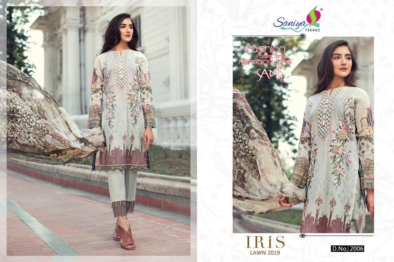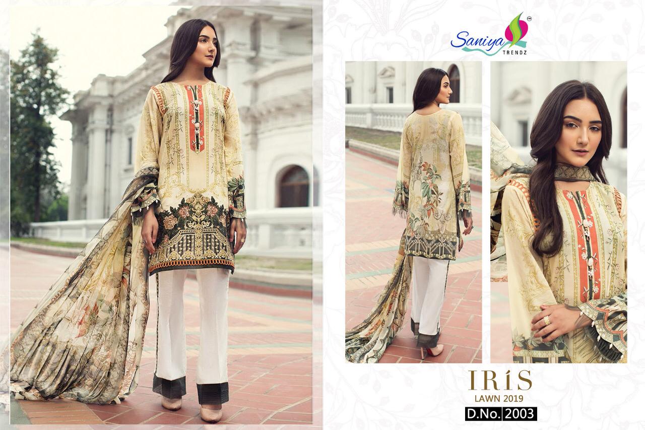 Buy Online Iris Lawn 2019 By Saaniya Trendz Satin Cotton Dress Materials Wholesale Supplier Surat 6 Pcs of Full Catalogue at Wholesale Price. Looking for Iris Lawn 2019 By Saaniya Trendz Satin Cotton Dress Materials Wholesale Supplier Surat Full Catalouge at Best Price? Buy Now Iris Lawn 2019 By Saaniya Trendz Satin Cotton Dress Materials Wholesale Supplier Surat at Wholesale Rate of Rs 5394 with Total 6 Pcs from authroized dealer and supplier of Brand. Cost of Each piece is just only Rs 899 which is very low and affordable price to resale the product in your retail store ,This is Surat based Wholesale Supplier & Dealer of Brand. Click on Brand name to Know more about Brand's products.Call or Whatsapp on 9898838984 for booking or enquiry
