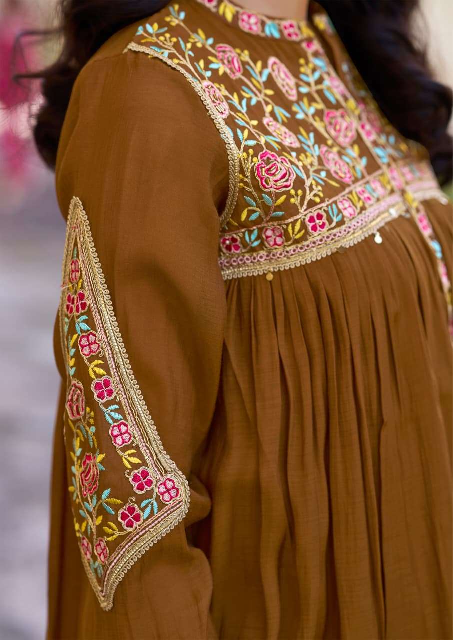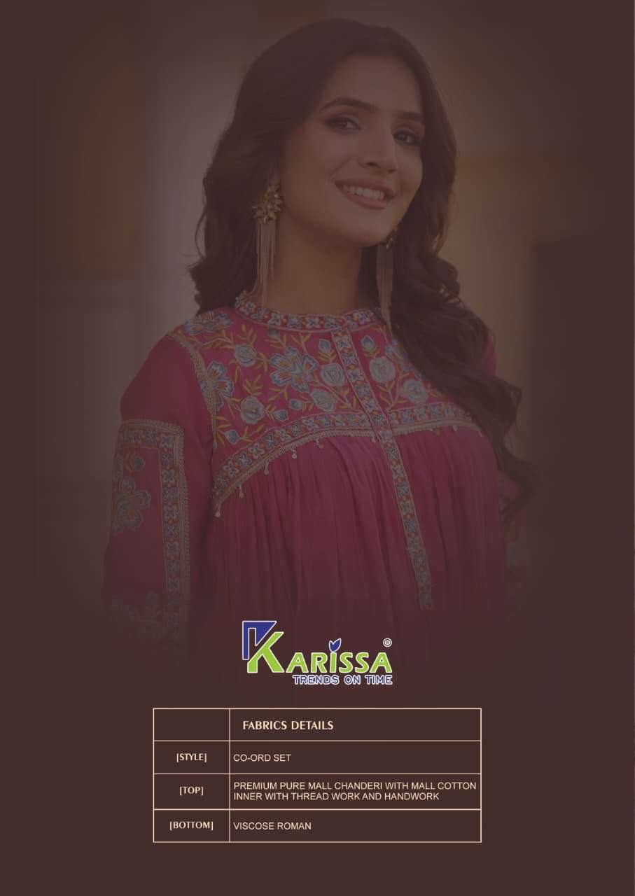 Brand : *KARISSA* Catalog : *ISHIKA* Design : *4* Fabric Top : Premium pure Viscose MALL chanderi with full cotton mall inner Bottom : viscose silk Style : short top with stitch style Work : cording dori thread work with hand work