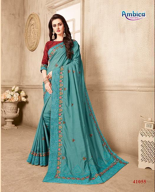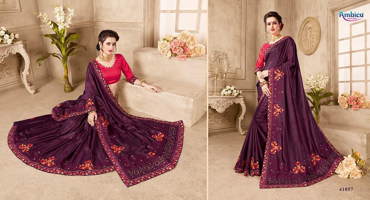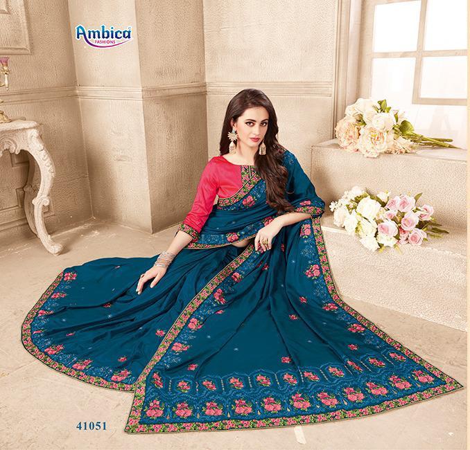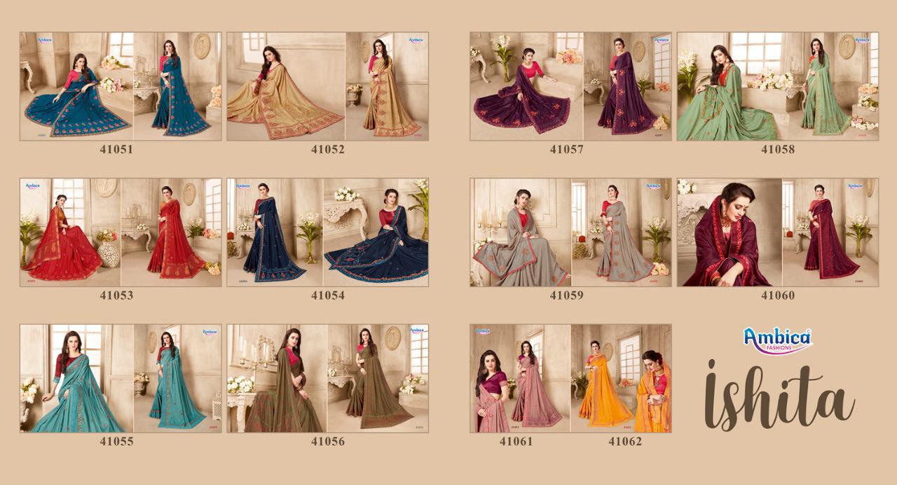 Buy Online Ishita By Ambica Series 41051 To 41062 Fancy Designer Party Wear Sarees Wholesale Supplier Surat 12 Pcs of Full Catalogue at Wholesale Price. Looking for Ishita By Ambica Series 41051 To 41062 Fancy Designer Party Wear Sarees Wholesale Supplier Surat Full Catalouge at Best Price? Buy Now Ishita By Ambica Series 41051 To 41062 Fancy Designer Party Wear Sarees Wholesale Supplier Surat at Wholesale Rate of Rs 21540 with Total 12 Pcs from authroized dealer and supplier of AMBICA Brand. Cost of Each piece is just only Rs 1795 which is very low and affordable price to resale the product in your retail store ,This is Surat based Wholesale Supplier & Dealer of AMBICA Brand. Click on Brand name to Know more about AMBICA Brand's products.Call or Whatsapp on 9898838984 for booking or enquiry
