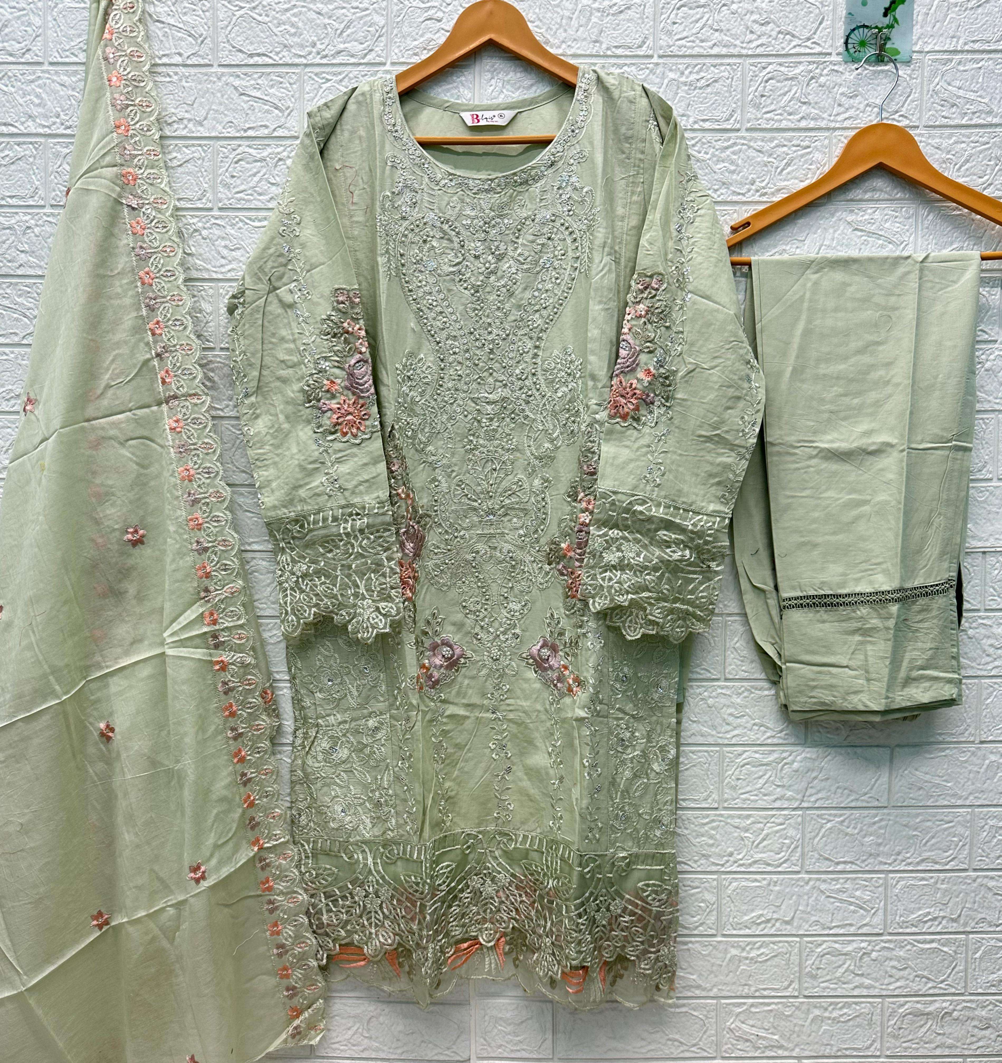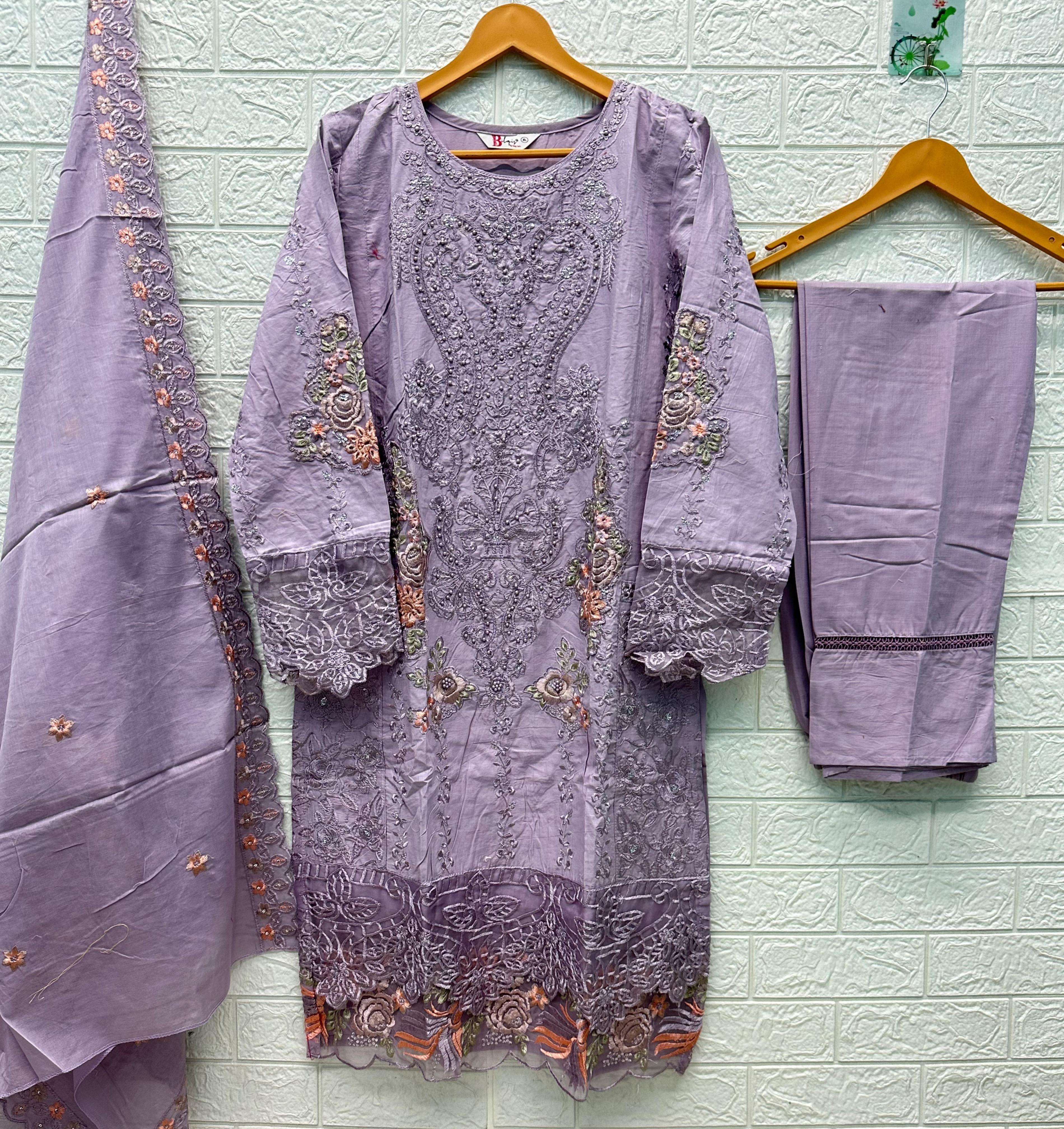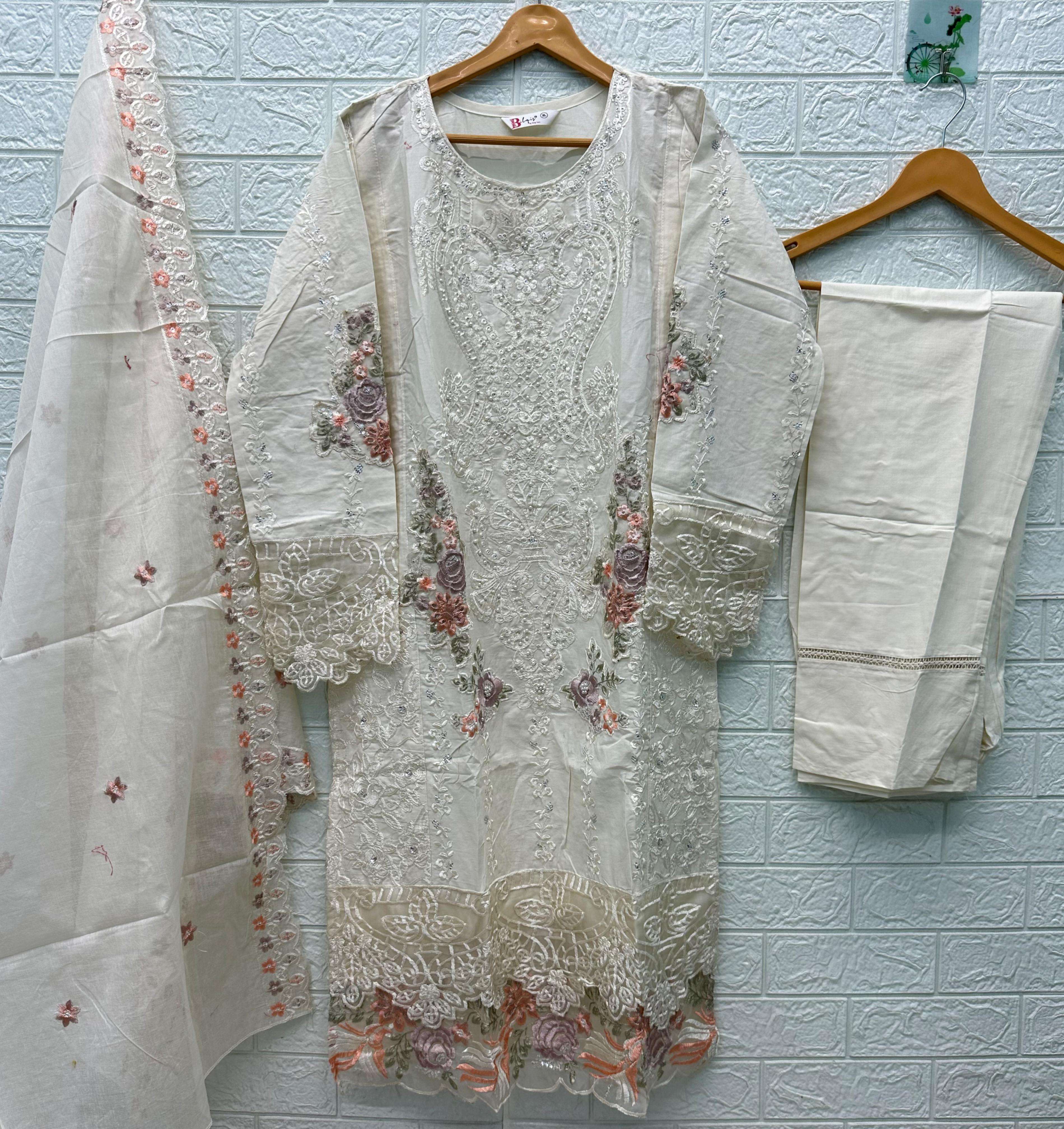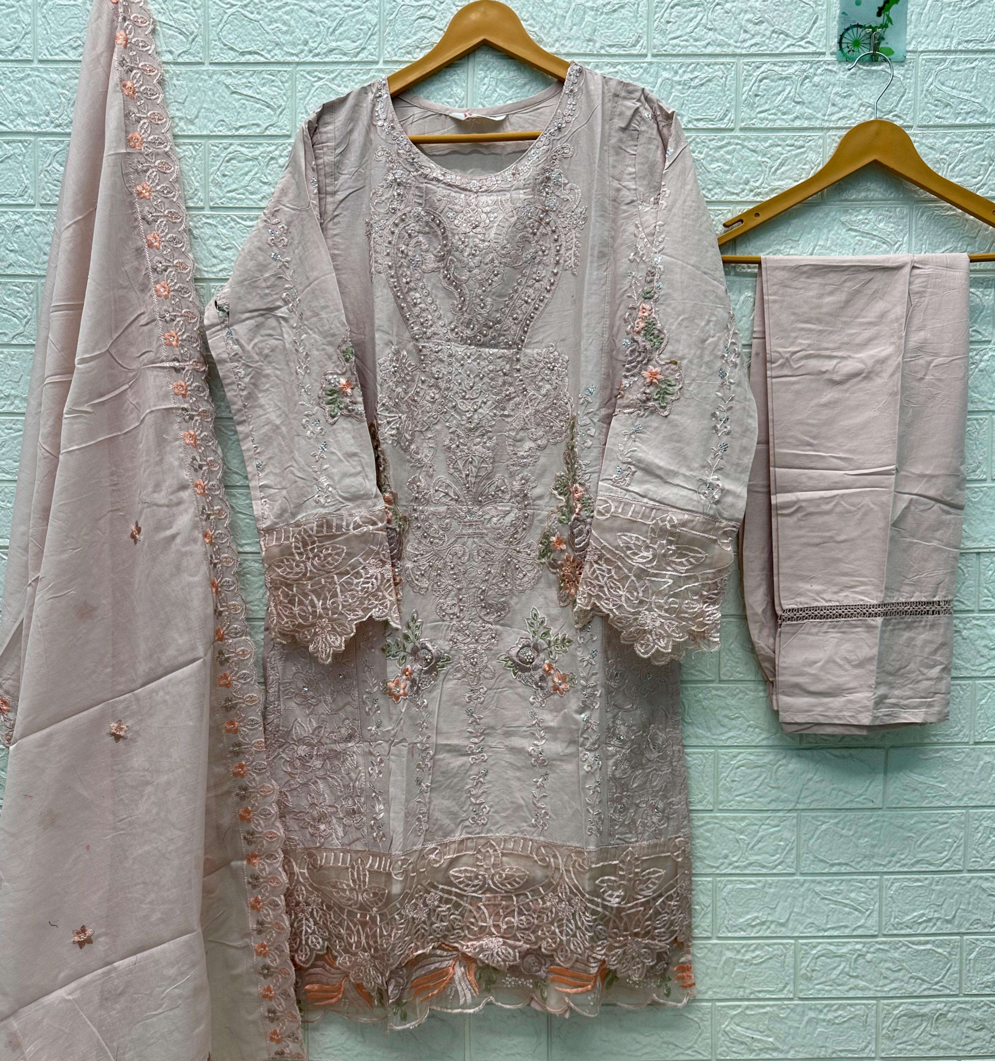 TOP - *CAMBRIC LAWN COTTON* HEAVY EMBROIDERED WITH *PEARLS* BOTTOM - *CAMBRIC LAWN COTTON* DUPATTA - *COTTON HEAVY EMBROIDERED*